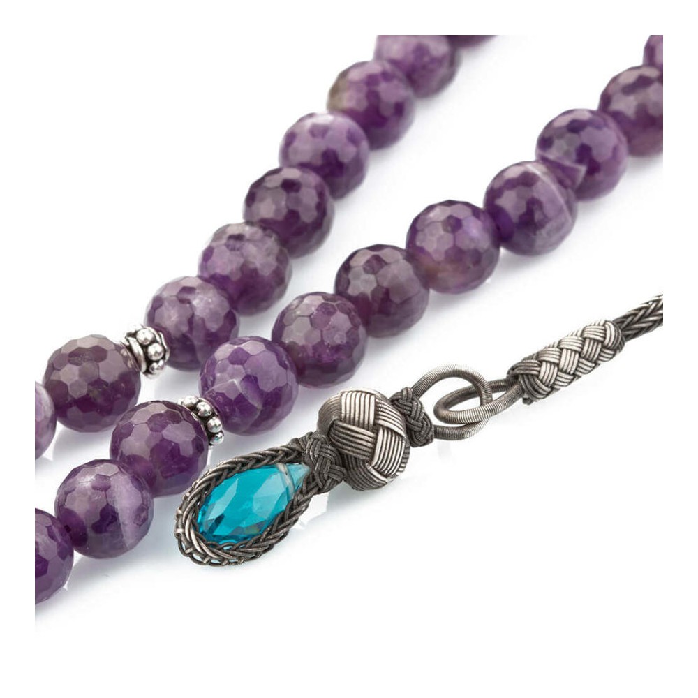 Fasetalı Ametist Taşlı 1000 Ayar Kazaz Püsküllü Tesbih