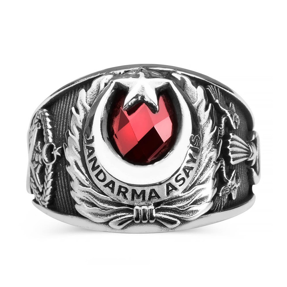 Yüzük üzerine özel stil ile "Jandarma" ve "Asayiş" yazılmıştır.