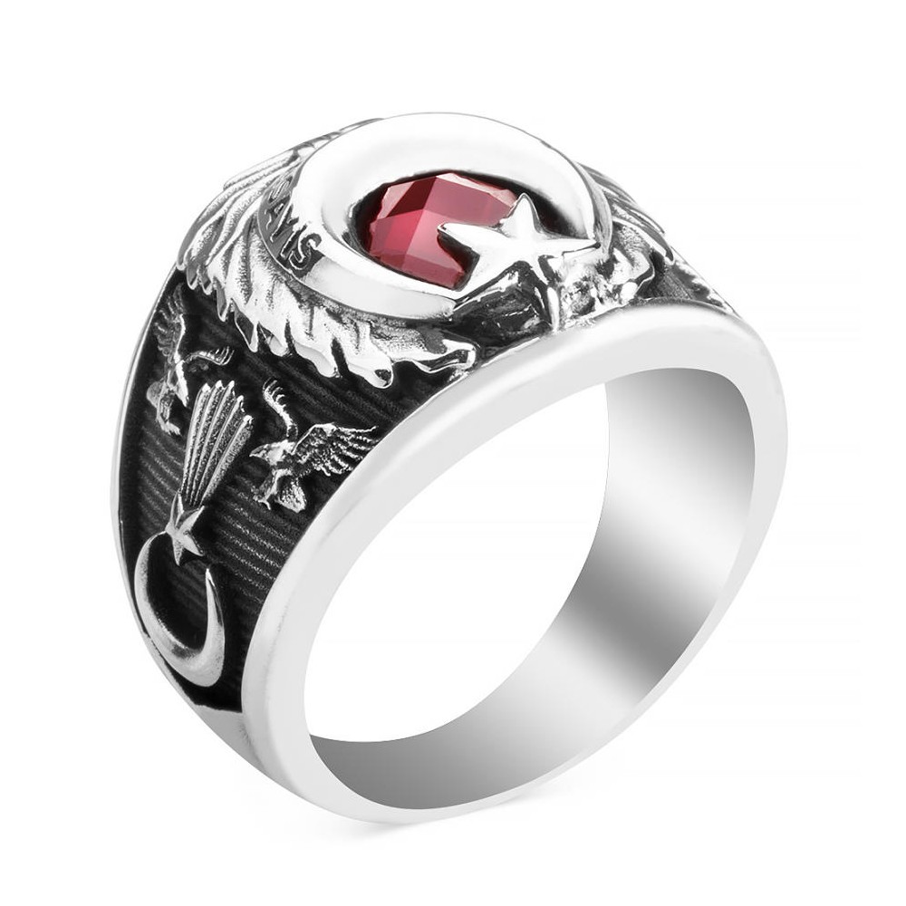 Jandarma Asayiş ekipleri için tasarladığımız 925 ayar gümüşle ürettiğimiz Ay Yıldız işlemeli devre yüzüğü.