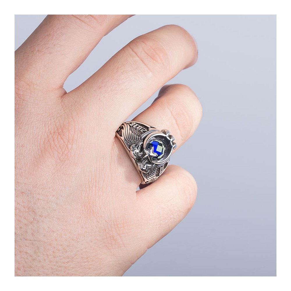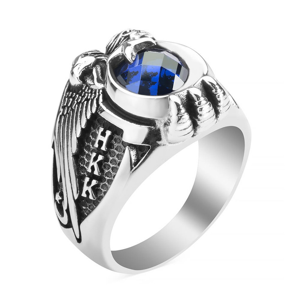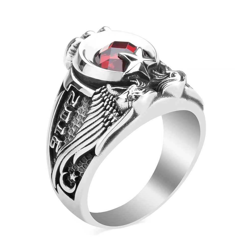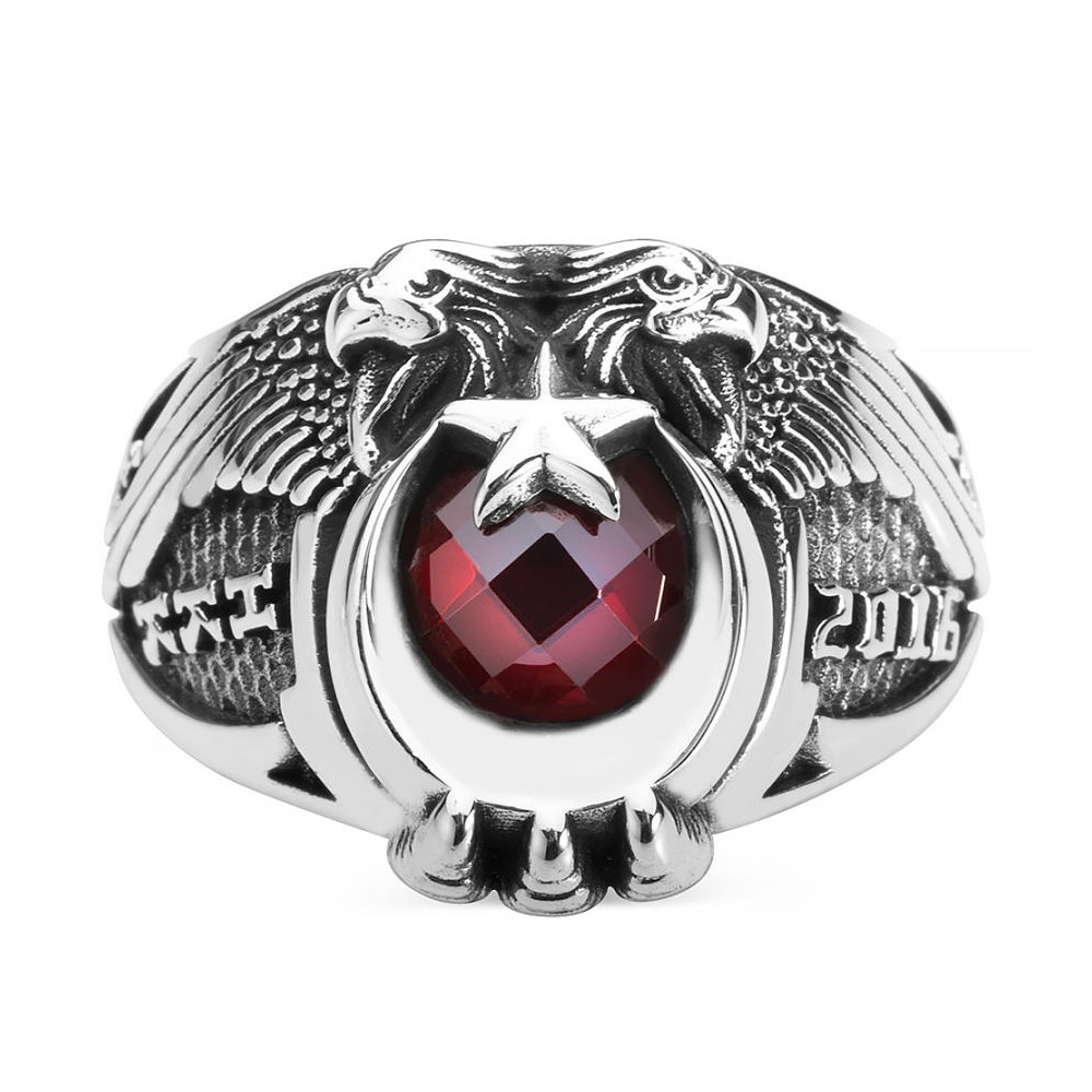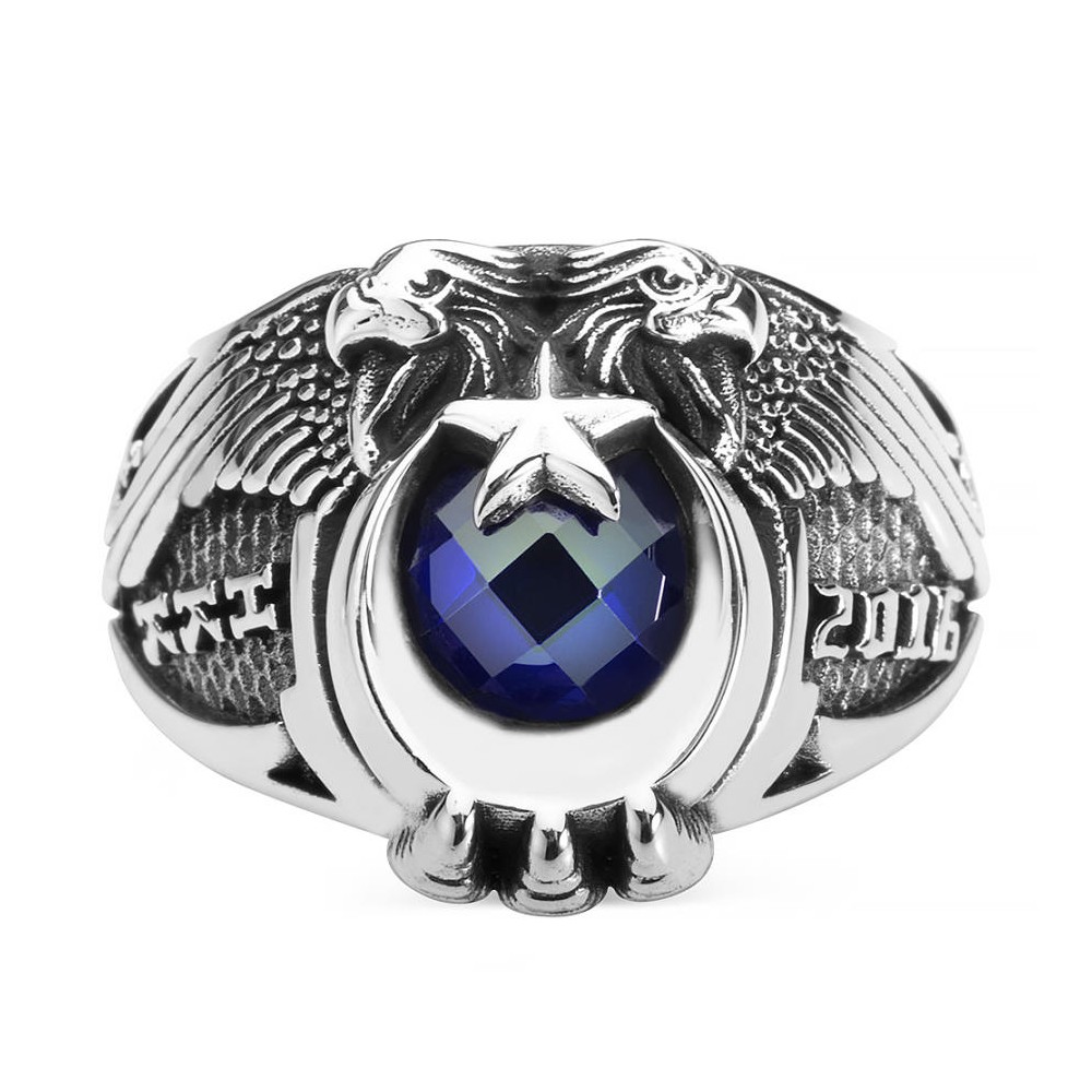 Hava Kuvvetleri 2016 devresi mensupları için özel olarak tasarlanan çift kartal başlı 925 ayar gümüş ay yıldızlı zirkon taşlı Hava Kuvvetleri yüzüğü.
