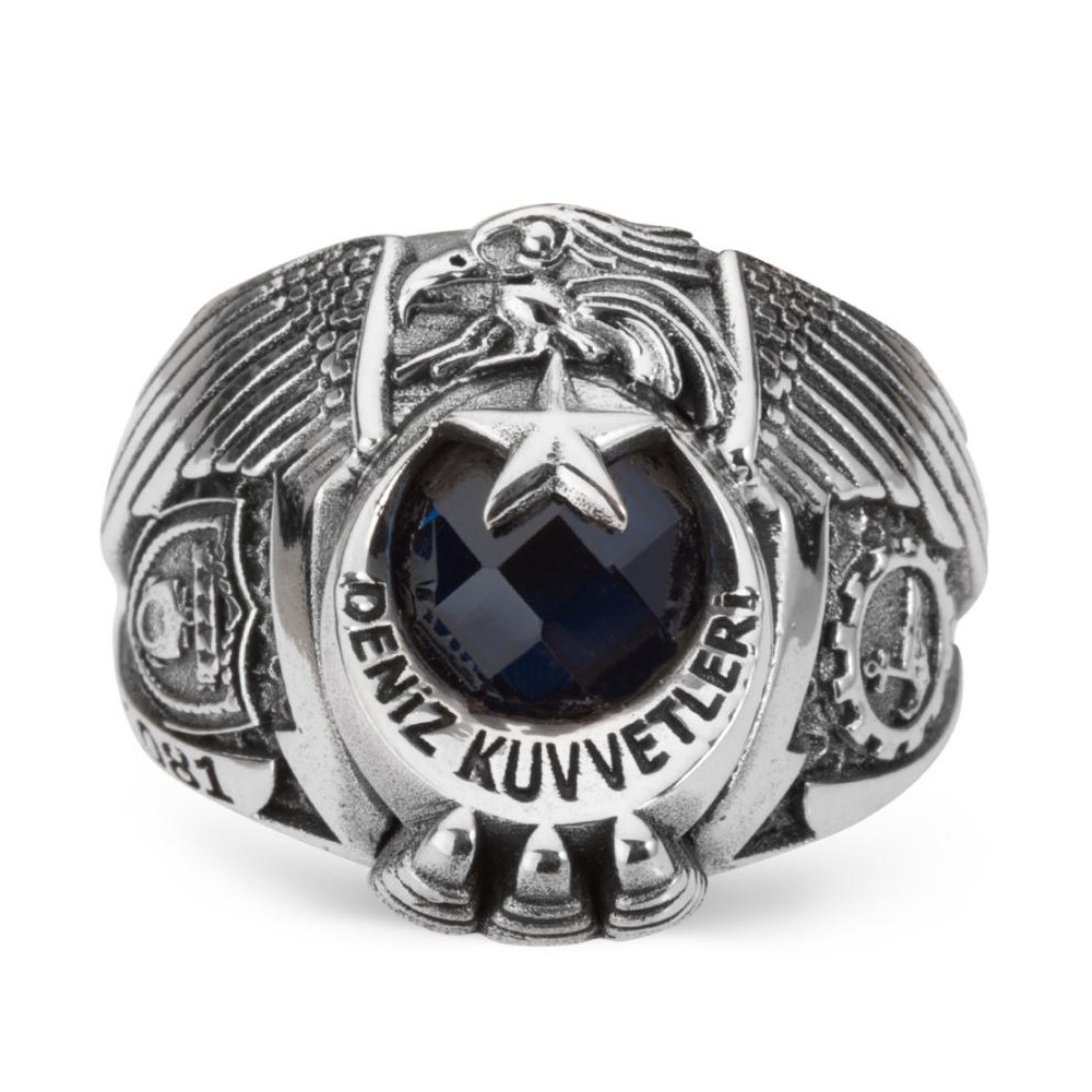 Deniz Kuvvetleri mensubu askerler için tasarlanan Anı Yüzükleri yeni tasarımlarla karşınızda! Denizci ruhuyla büyüyen ve yetişen kahraman askerlerimiz için tasarlanan bu Anı yüzüğü ile siz de mesleğinizden bir nişanenin sahibi olacaksınız. 925 ayar gümüşten üretilen bu aksesuarda geleneksel kartal başı ve ay yıldız tasarımı kullanılmış yüzük, ısıya dayanıklı zirkon taş ile zenginleştirilmiştir. Yüzük yanlarında Deniz Kuvvetleri arması ve çapa figürüne yer verilmiştir. Mesleğinizin gururunu her daim yaşamak isteyenler, siz de Kuyumcumdan'a gelin! Ömür boyu garantili şık bir aksesuarın sahibi olun.