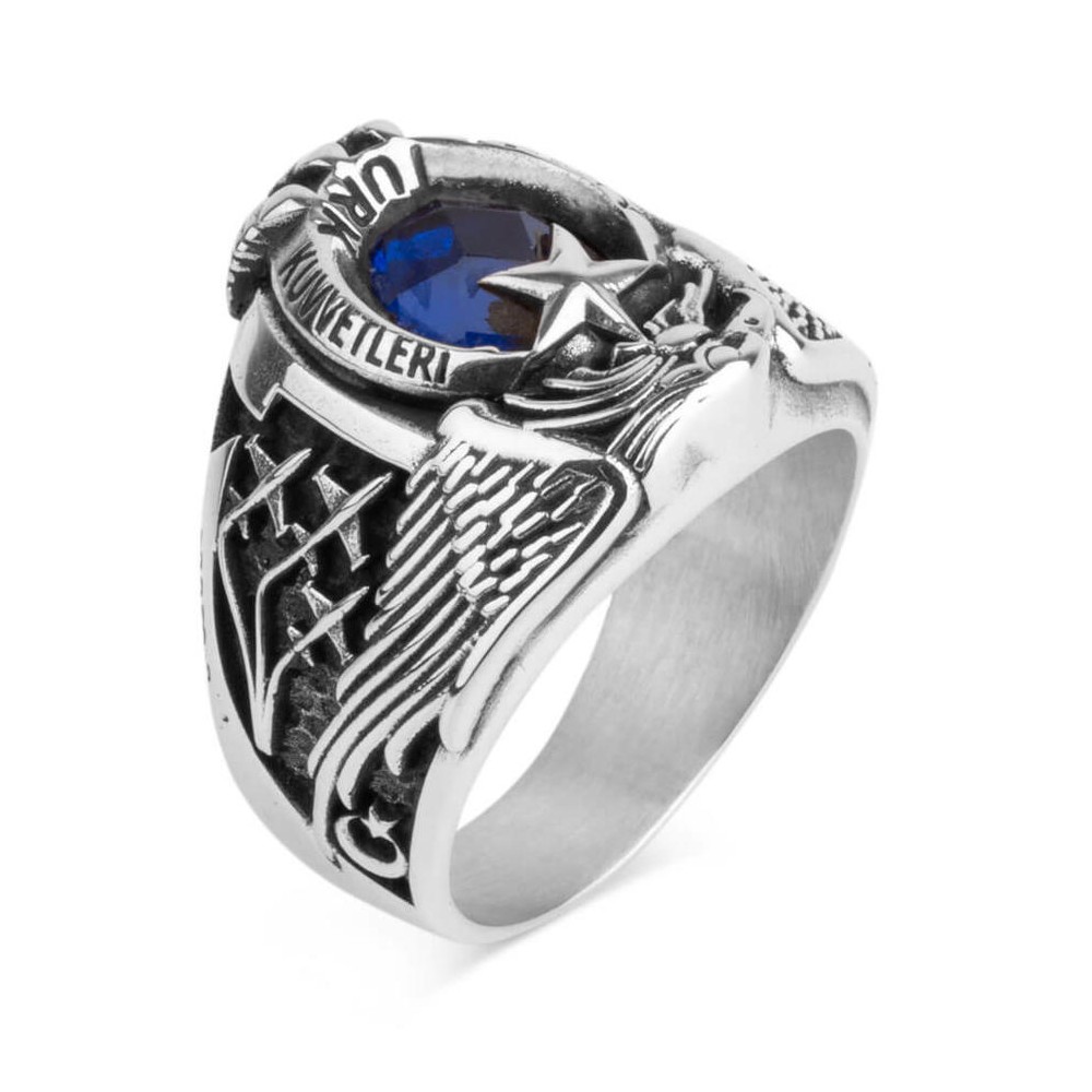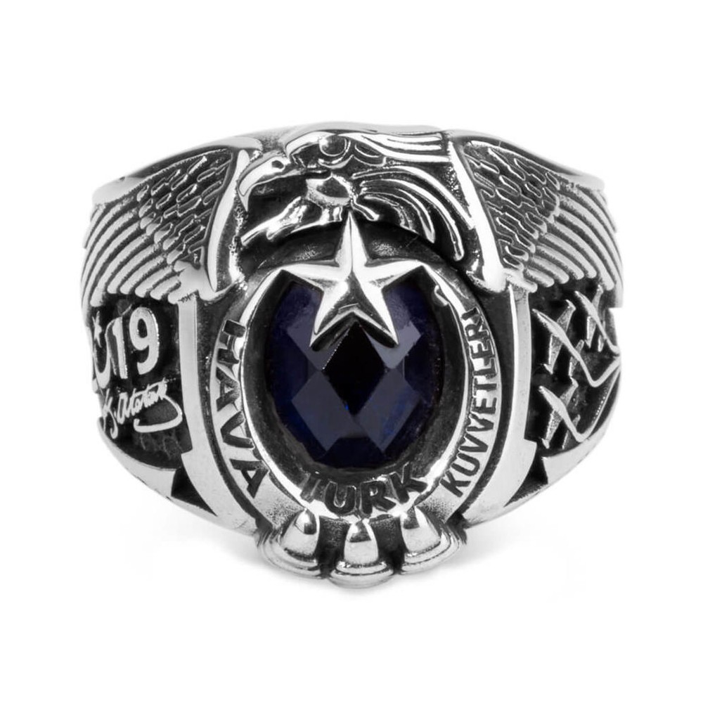 Yüzük yanlarında devre yılı, Atatürk imzası ve uçak figürlerine yer verilmiştir. Yüzük hilaline ise "Türk Hava Kuvvetleri" yazısı işlenmiştir. Siz de hemen sipariş vererek bu özel tasarım askeri yüzüğün sahibi olabilirsiniz.