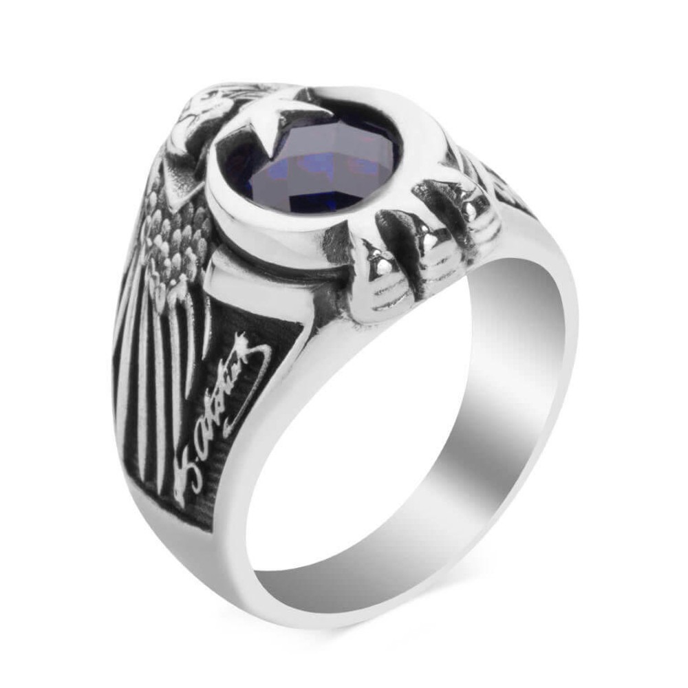 Yüzük üzerindeki kırmızı zirkon taşa ay ve yıldız motifleri işlenerek Türk Bayrağı motifi yapılmıştır, bu motif kartal pençesi ve kartal başı ile birleştirilmiştir.
