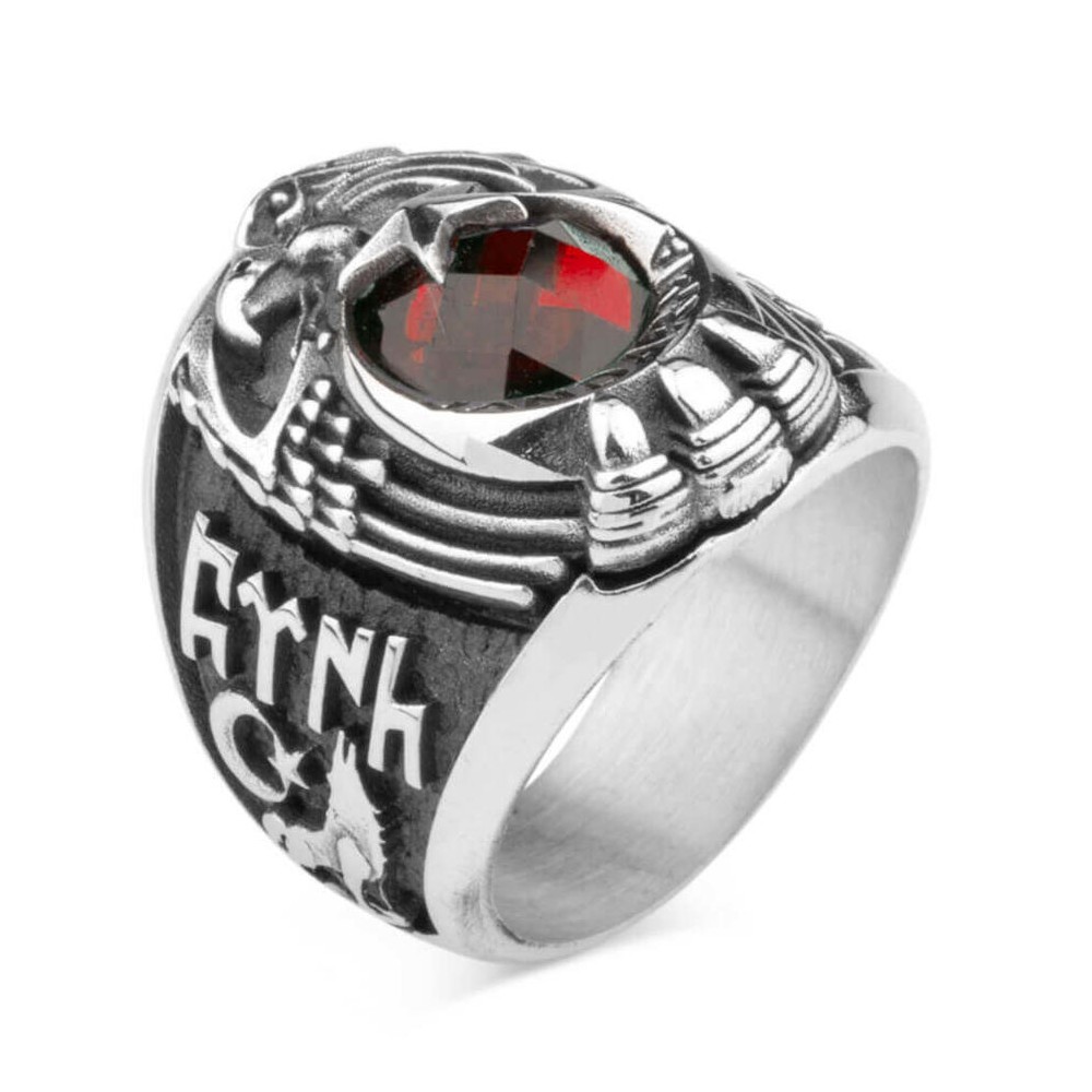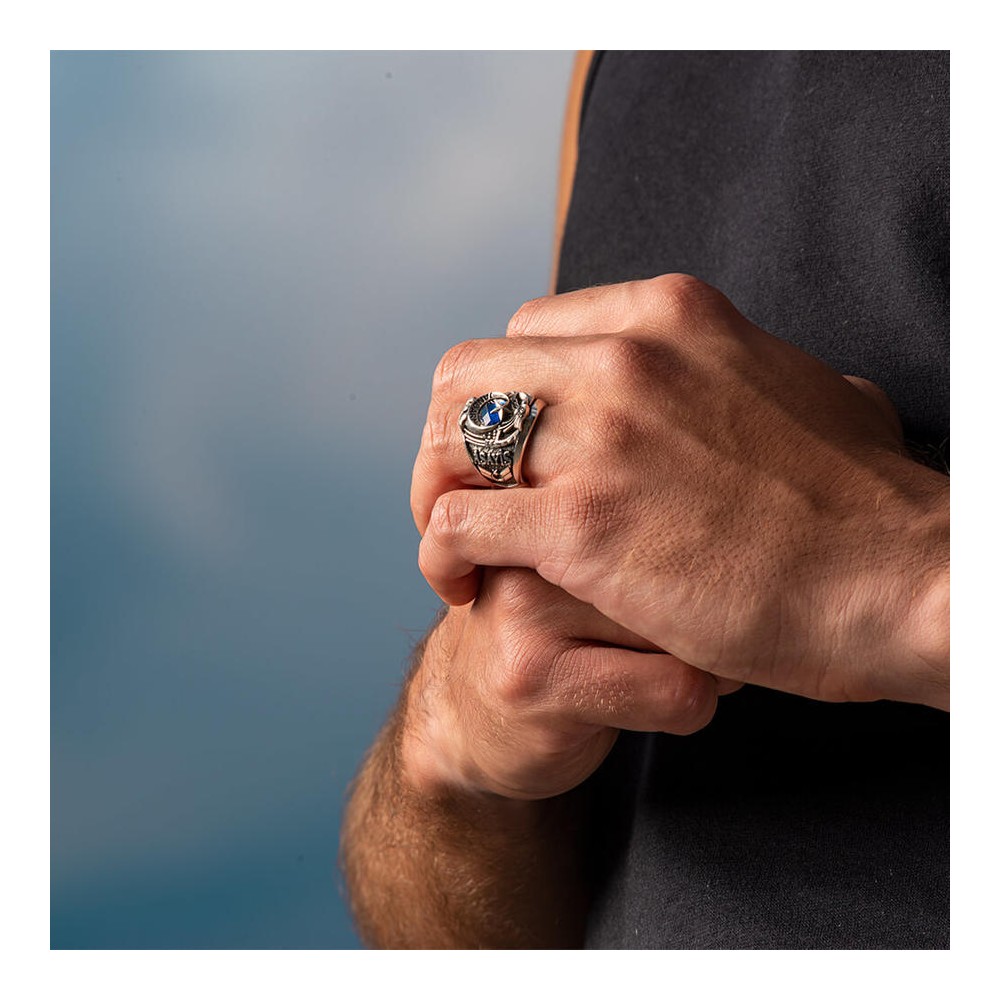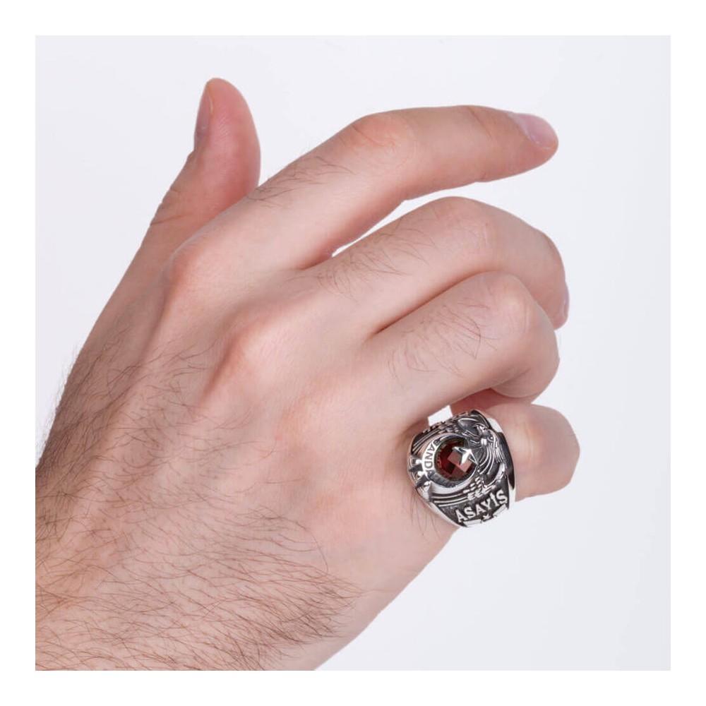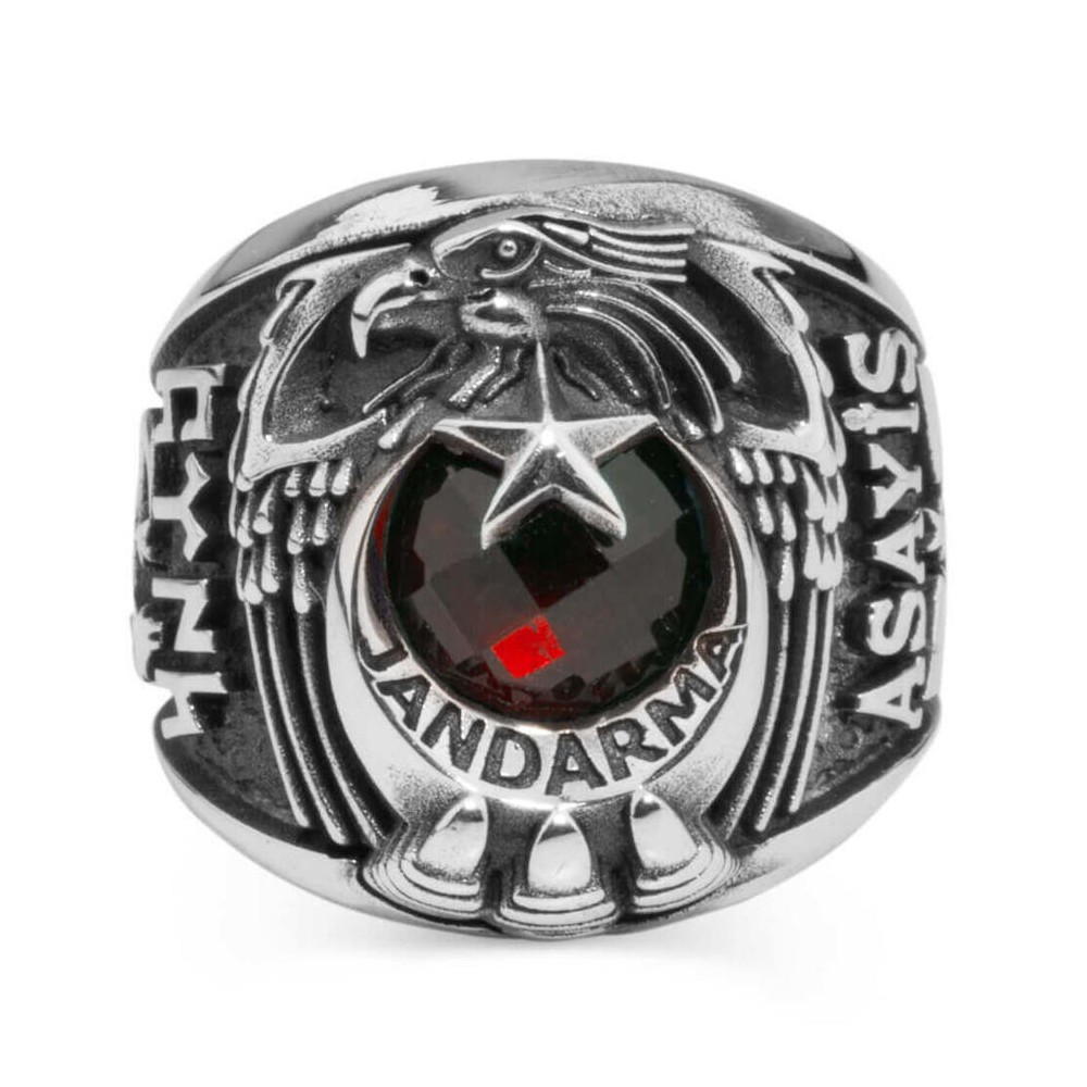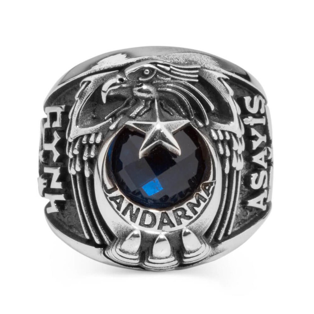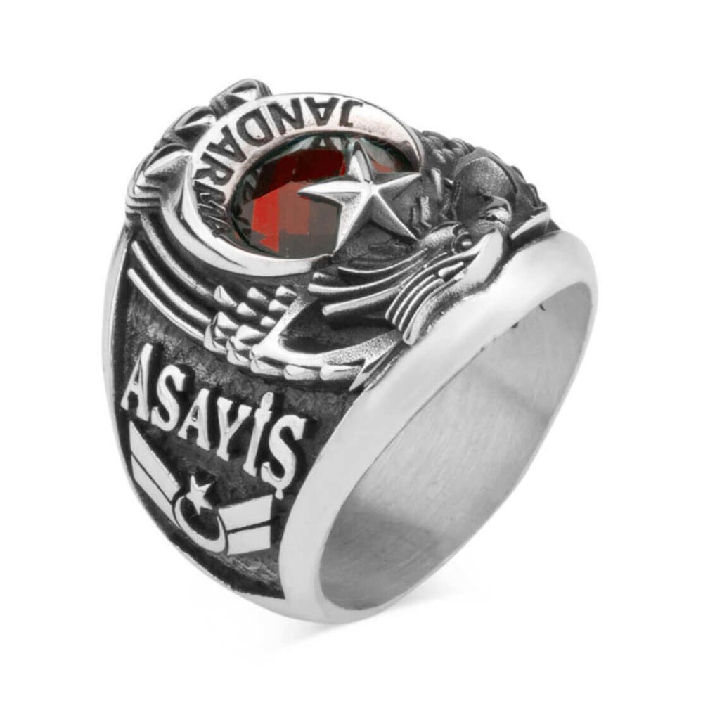 Jandarma Asayiş mesleği mensupları için tasarlanan bu taşlı devre yüzüğünü daha yakından incelemeye ne dersiniz? 925 ayar gümüşten üretilen bu aksesuarda yüzük yanlarında Göktürkçe Türk ve Bozkurt figürü ile diğer yanda Asayiş yazısı ve Uzman Çavuş rütbesine yer verilmiştir. Siz de hemen sipariş verin, bu devre yüzüğünü kaçırmayın!
