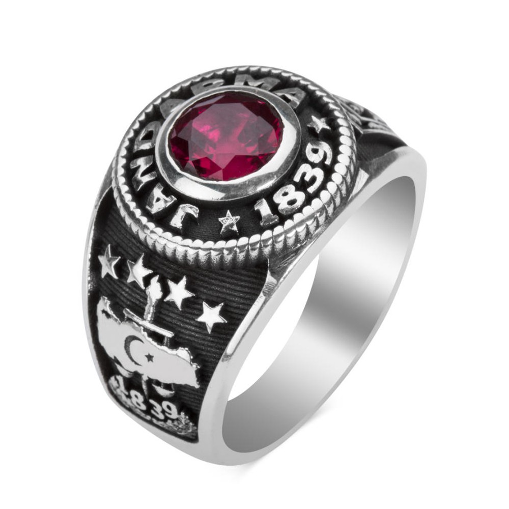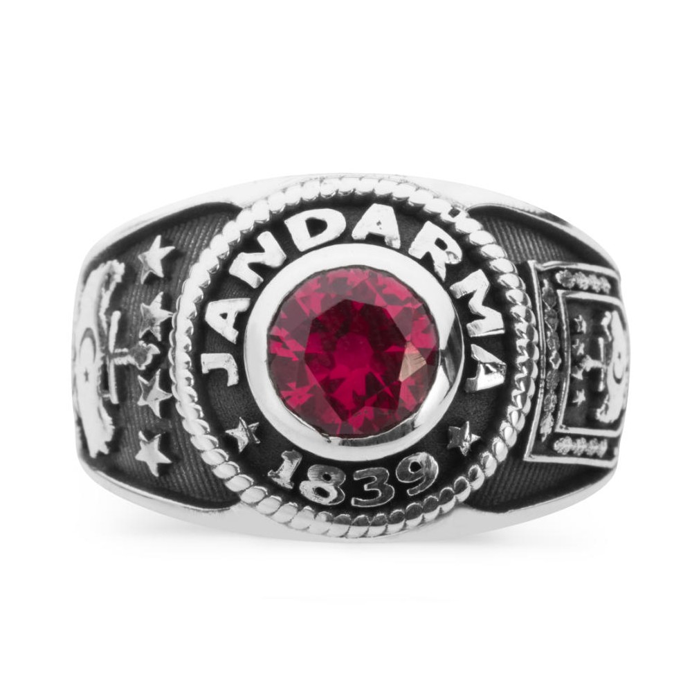 Türk toplumunun düzeni ve güvenliğiiçin canlarını ortaya koymaktan çekinmeyen değerli Jandarma mensuplarına özel muhteşem bir tasarım... 925 ayar gümüş ile özenle tasarlanan bu yüzüğün üzerinde zirkon taş, 'Jandarma' ve '1839' yazısı bulunmaktadır. Yaklaşık 12 gr ağırlığındaki bu yüzük, şık ve kaliteli görünümüyle tercih edilmektedir. Yüzük yanlarında bulunan Jandarma ve Türk Silahlı Kuvvetlerine ait motifler, modern çizgilerle harmanlanarak yüzük üzerine yerleştirilmiş ve beğenilerinize sunulmuştur. Dilerseniz kendinize, dilerseniz sevdiklerinize satın alabileceğiniz bu yüzük ile, şıklık ve sadakati bir arada yaşayabilirsiniz.Ürün Özellikleri925 ayar gümüşten üretilmiştir.Yaklaşık 12 gram ağırlığındadır. Yüzük üzerinde zirkon taş, Jandarma yazısı ve jandarma teşkilatının kuruluş tarihi olan 1839 yazısı işlenmiştir.Jandarma mensupları ve sevdalıları için hazırladığımız bu ürün deneyimli ekibimiz tarafından üretilmektedir. Ömür boyu bakım garantimiz altındadır.