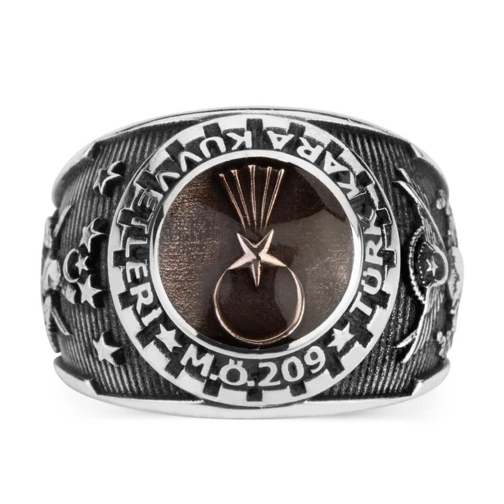 Yüzük üzerinde "Şua" motifi yer almakta ve etrafında "Türk Kara Kuvvetleri M.Ö 209" yazmaktadır.