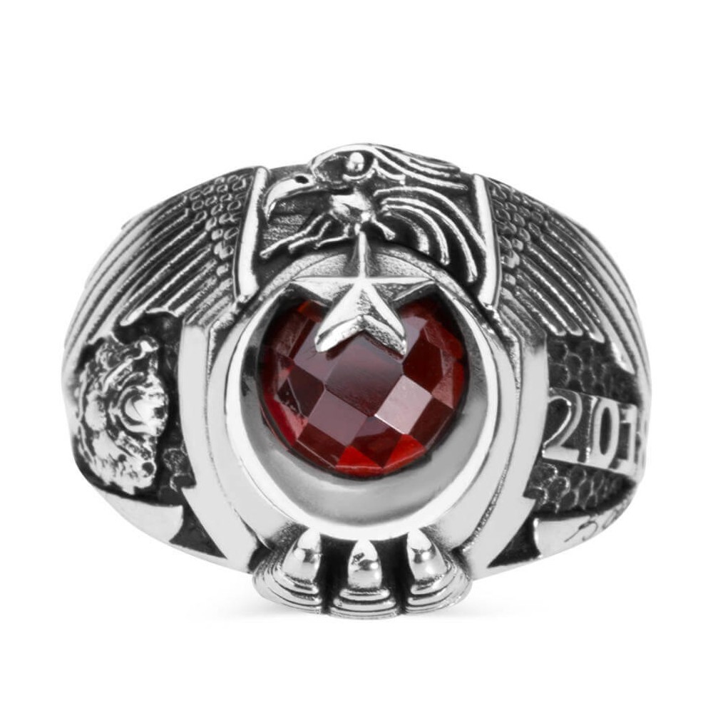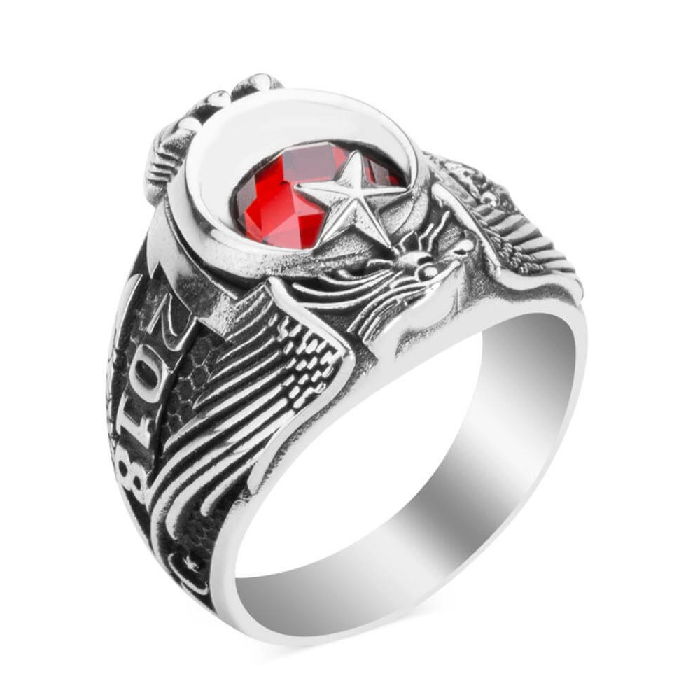 Türk Silahlı Kuvvetleri'ne bağlı olarak görev yapan Hava, Kara ve Deniz Kuvvetleri mensubu asker ve personellerimize özel 925 ayar gümüşle ürettiğimiz ömür boyu garantili Osmanlı Devleti armalı askeri devre yüzüğü.Ürün Özellikleri925 ayar gümüşten üretilmiştir.Yaklaşık 14 gram ağırlığındadır. Yüzüğün bir yanında Osmanlı arması diğer yanında devre tarihi işlemesi bulunmaktadır.Devre yılınızı sipariş notunda belirtmeyi unutmayınız!Ömür boyu bakım garantimiz altındadır. Bu gümüş yüzükte neden zirkon taş kullanılıyor?Zirkon taşın en önemli özelliği dayanıklı olmasıdır. Yüksek ısıda ürettiğimiz 925 ayar gümüş yüzüklerimizde yüksek ısıya dayanıklı olduğu için zirkon taş kullanılmaktadır. Yüzük ölçümü nasıl öğrenebilirim? Yüzük ölçünüzü herhangi bir kuyumcudan öğrenebilirsiniz.