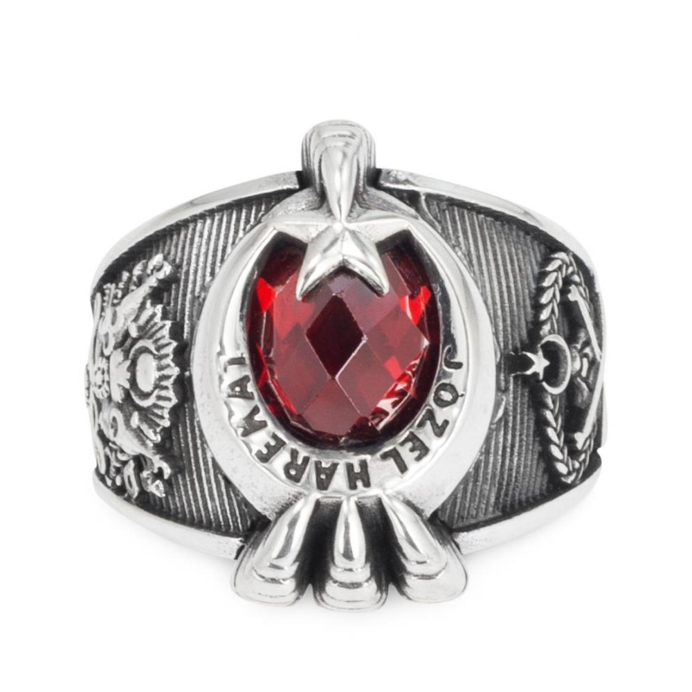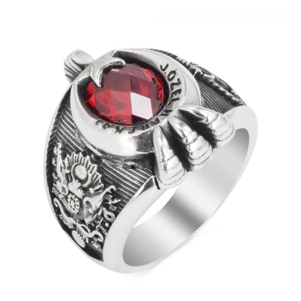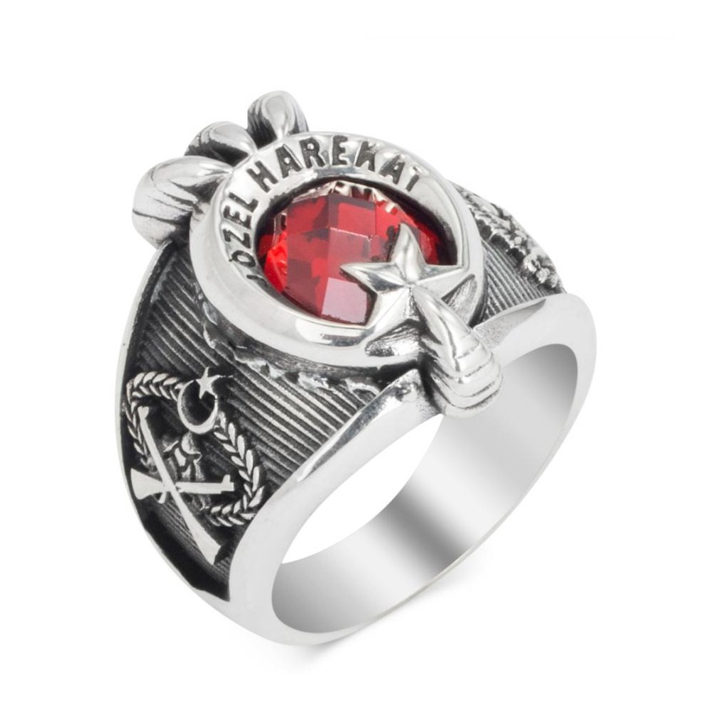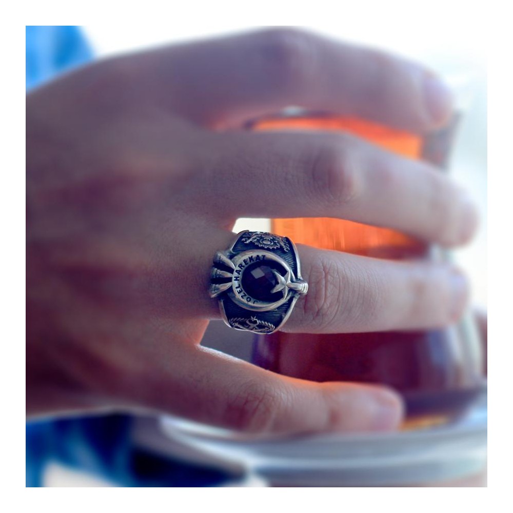 Jandarma Özel Harekat mensupları için tasarlanan yüzükler yeni yorumlarla karşınızda. Meslek hayatınızda tarzınızı yansıtmada size yardımcı olacak bu aksesuarda Şanlı bayrağımızın sembolü ay yıldız ile pençe motifi bir arada kullanılmış zirkon taş ile zenginleştirilmiştir. 925 ayar gümüşten üretilen bu yüzükte M.Kemal Atatürk imzası ile Osmanlı Armasına yer verilmiştir. Siz de hemen sipariş verin, tarzınızı yansıtacağınız şık bir aksesuarın sahibi olun.