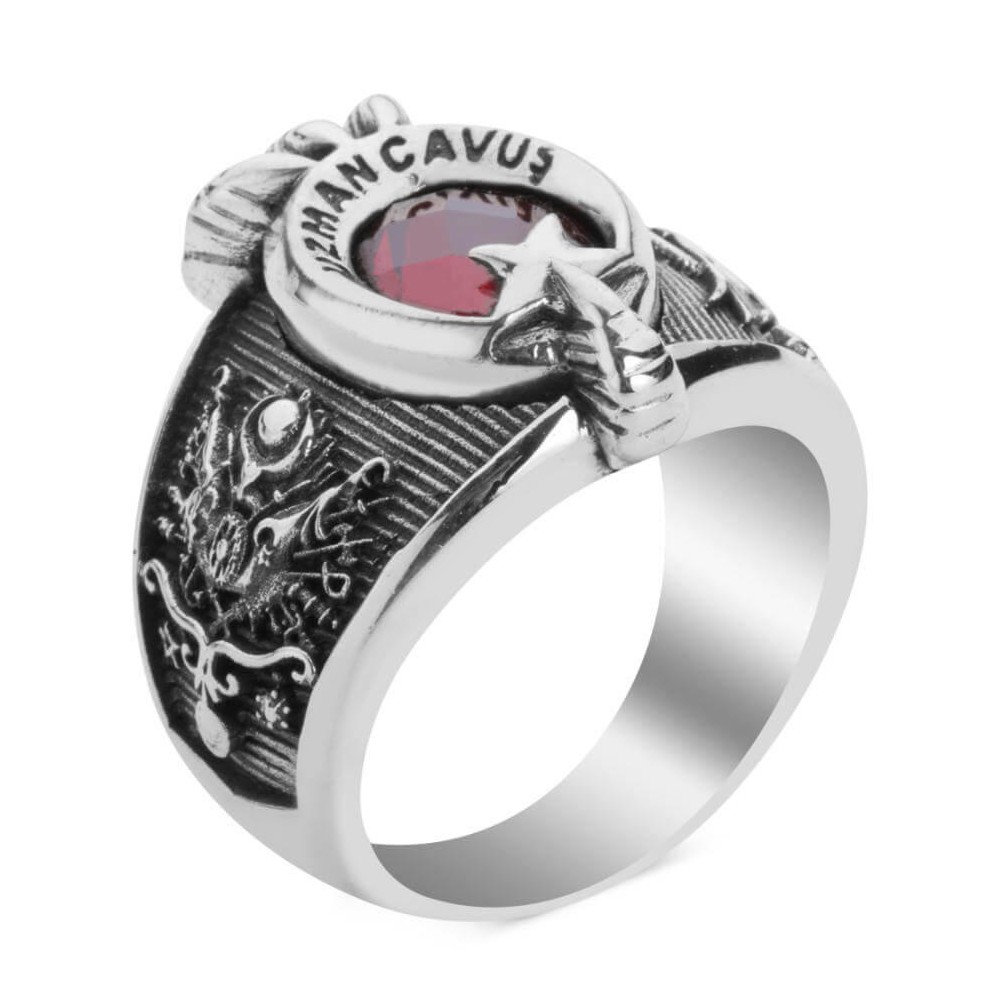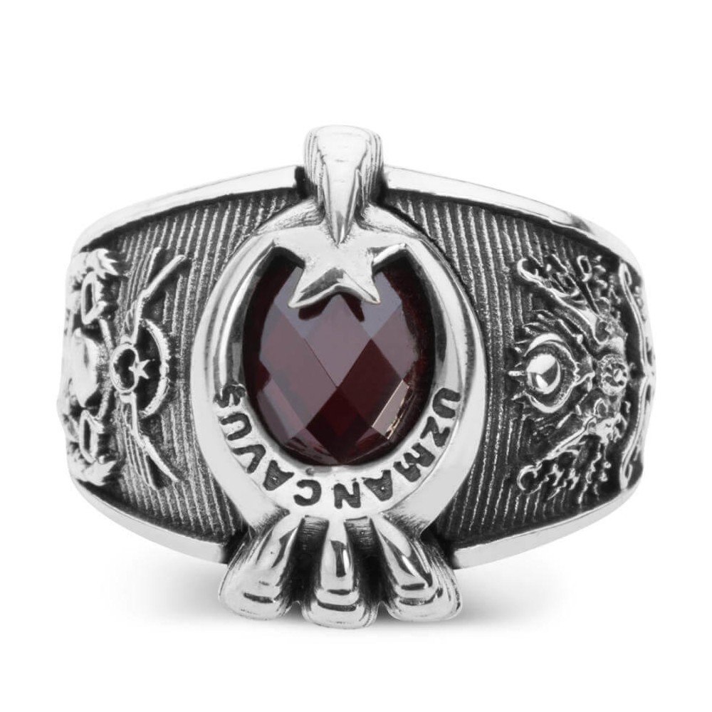Uzman Çavuşlar için özel olarak tasarlanan 925 ayar gümüş ay yıldız ile pençe tasarımlı bu aksesuarı daha yakından inceleyin! Mesleğinize olan bağlılığınızı taşıdığınız aksesuarlarla da göstermek istiyorsanız doğru adrestesiniz. Bu aksesuarın bir yanında Osmanlı arması diğer yanında ise TSK armasına yer verilmiştir. Siz de hemen sipariş vererek mesleğinize özel olarak üretilen askeri yüzüğün sahibi olabilirsiniz. Ürün Özellikleri925 ayar gümüşten üretilmiştir.Yaklaşık 14 gram ağırlığındadır. Yüzüğün bir yanında "Türk Silahlı Kuvvetleri" arması, diğer bir yanında "Osmanlı Arması" işlemesi bulunmaktadır. Uzman Çavuşlar için hazırladığımız bu ürün deneyimli ekibimiz tarafından üretilmektedir. Ömür boyu bakım garantimiz altındadır. Bu gümüş yüzükte neden zirkon taş kullanılıyor?Zirkon taşın en önemli özelliği dayanıklı olmasıdır. Yüksek ısıda ürettiğimiz 925 ayar gümüş yüzüklerimizde yüksek ısıya dayanıklı olduğu için zirkon taş kullanılmaktadır. Yüzük ölçümü nasıl öğrenebilirim? Yüzük ölçünüzü herhangi bir kuyumcudan ücretsiz olarak öğrenebilirsiniz.