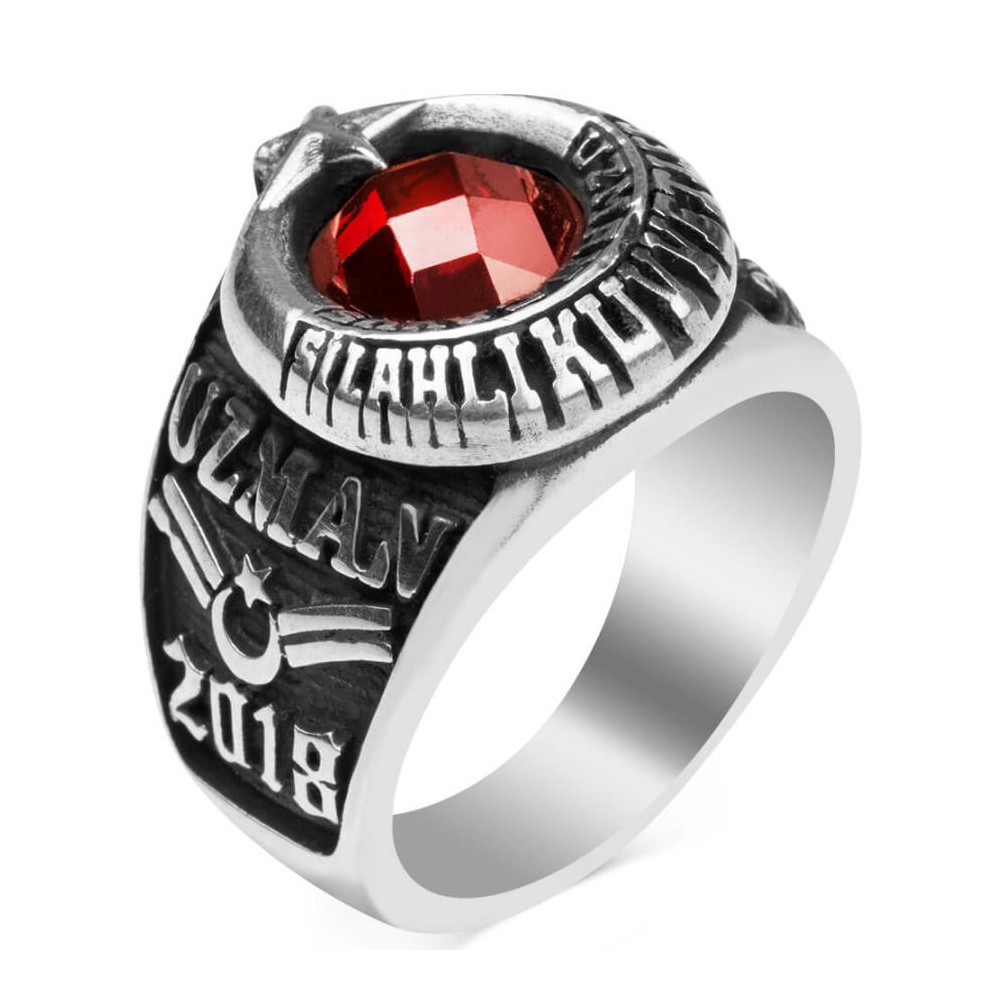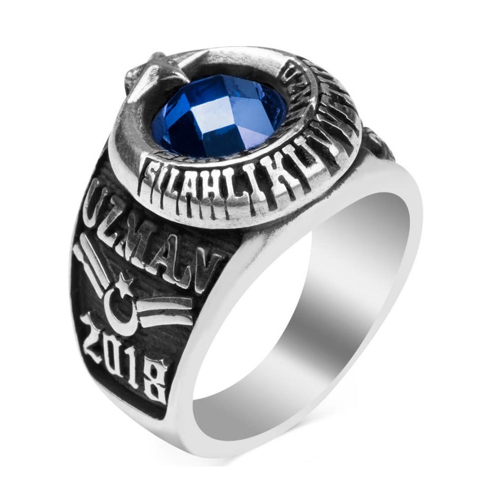 Uzman Çavuşlar için özel olarak tasarlanan bu Anı yüzüğü ile mesleğinize özel hazırlanan şık bir aksesuarın sahibi olmaya ne dersiniz? 925 ayar gümüşten üretilen bu aksesuarda tarihi motiflerden esinlenerek cihan devleti Osmanlı'nın meşhur armasına yer verilmiştir. Yüzük hilaline özel bir teknik olan kabartma yöntemi ile "Silahlı Kuvvetler Uzman çavuş" yazısı işlenmiştir. Yüzük yanında döneme ait tarih işlenmiştir. Siz de kendi döneminize özel şık bir Anı yüzüğü tasarlatmak isterseniz doğru adrestesiniz! Hemen sipariş verin, ömür boyu garanti imkanıyla şık bir aksesuarın sahibi olun.