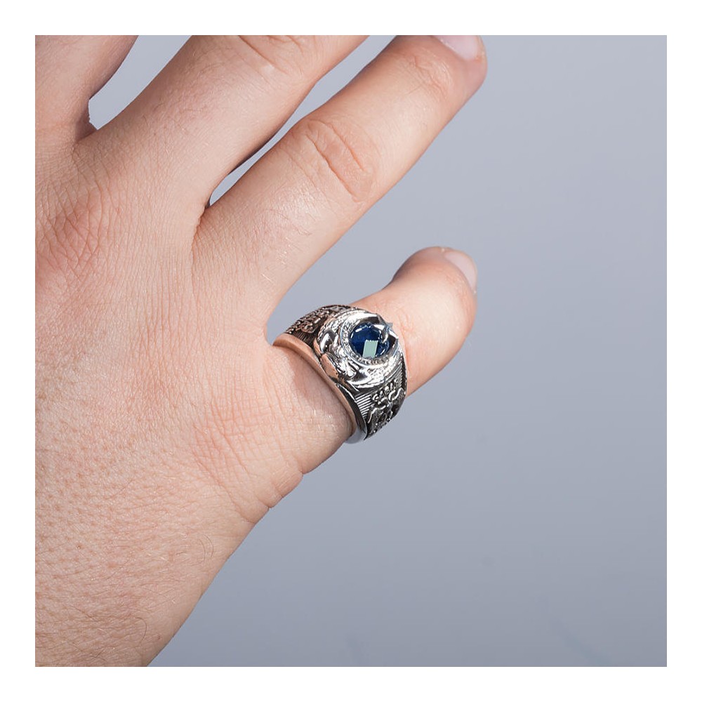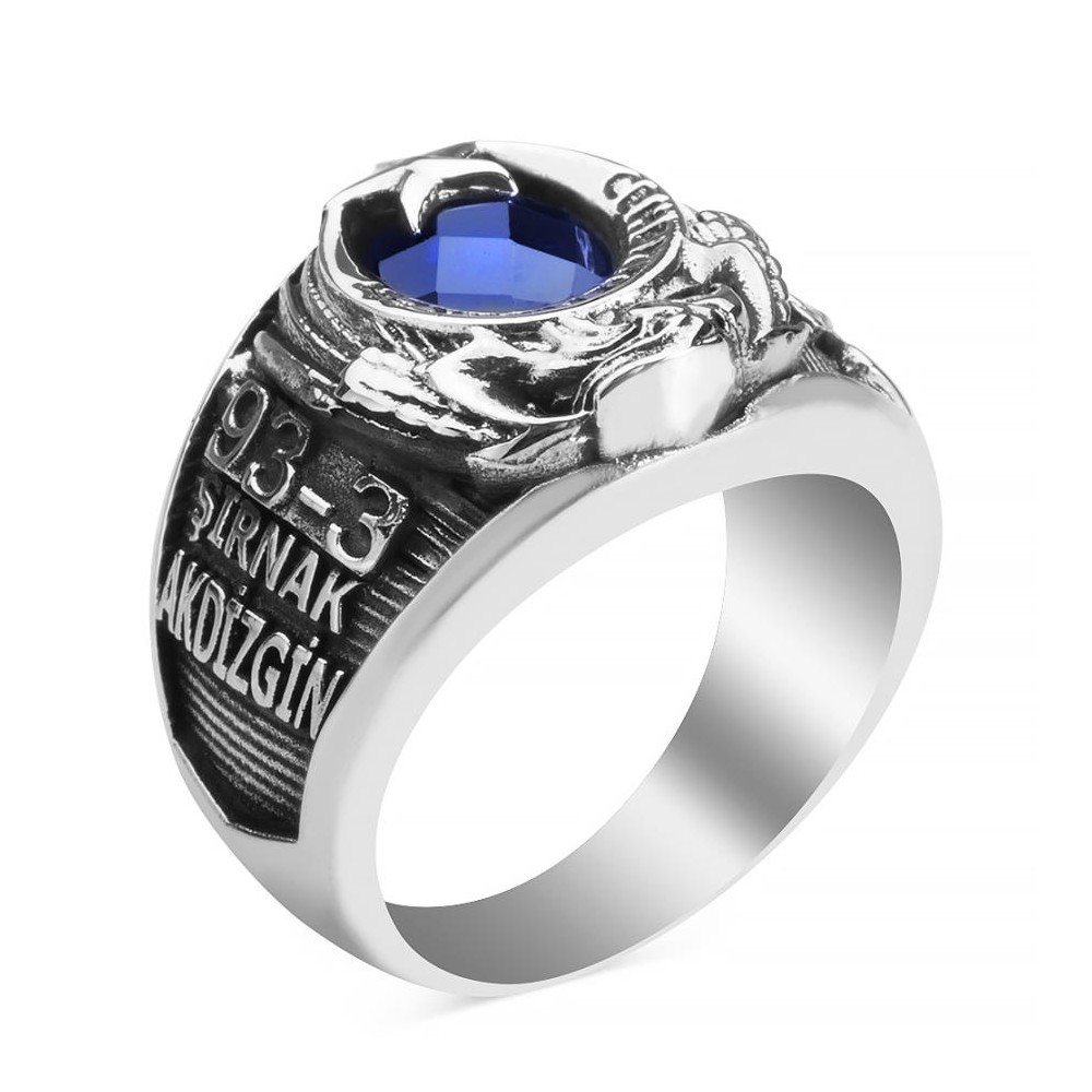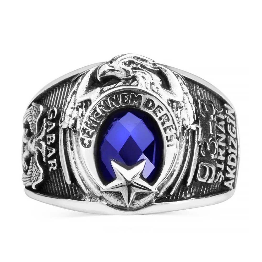 Şırnak Cehennem Deresi Gabar Kartalları için hazırlanan zirkon taşlı 925 ayar gümüş kartal başlı Cehennem Deresi devre yüzüğü.