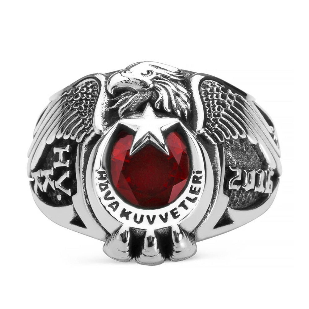 Hava Kuvvetleri 2016 yılı devresi mensupları için özel olarak tasarlanan kartal başlı 925 ayar gümüş ay yıldızlı zirkon taşlı Hava Kuvvetleri yüzüğü. Siz de kendi devre yılınızı yazdırarak size özel bir yüzüğün sahibi olabilirsiniz.
