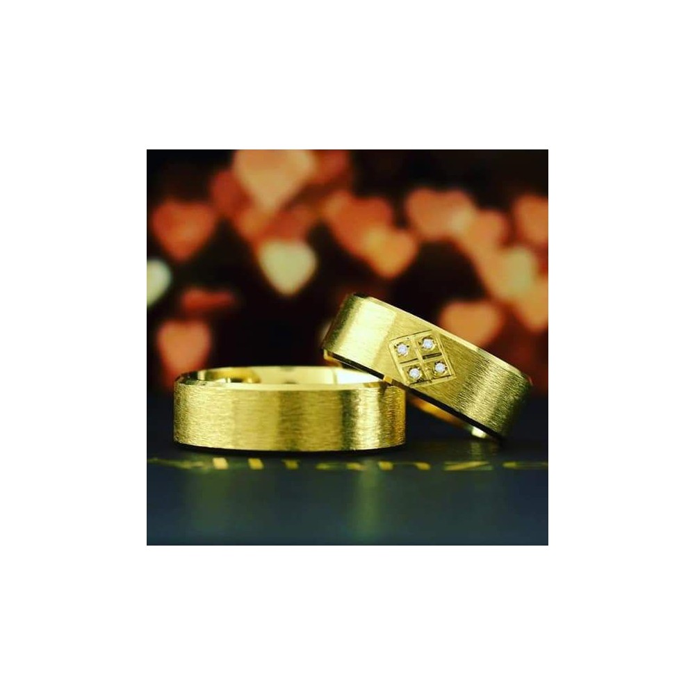 Altın Kaplama Düz Kesim Taşlı Alyans