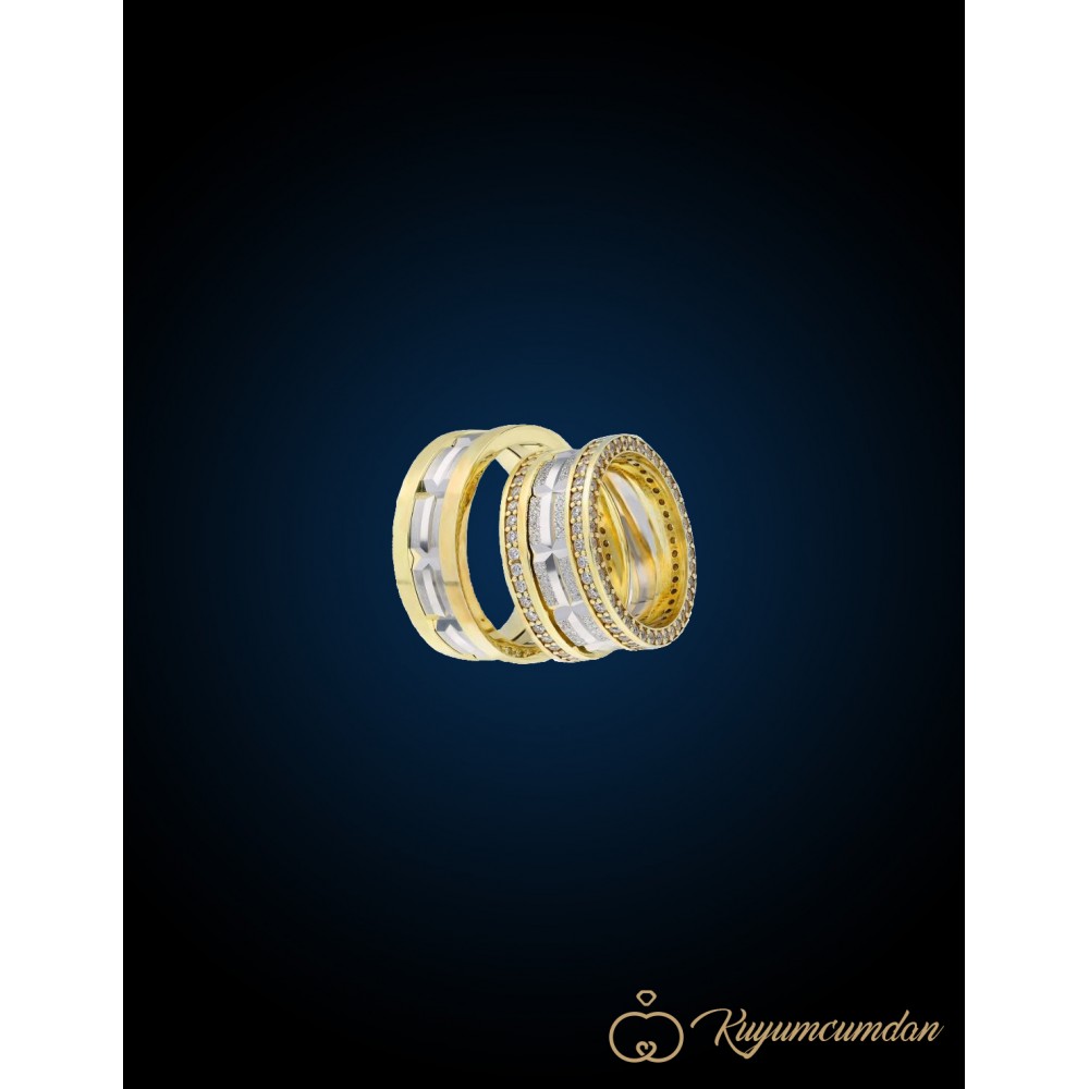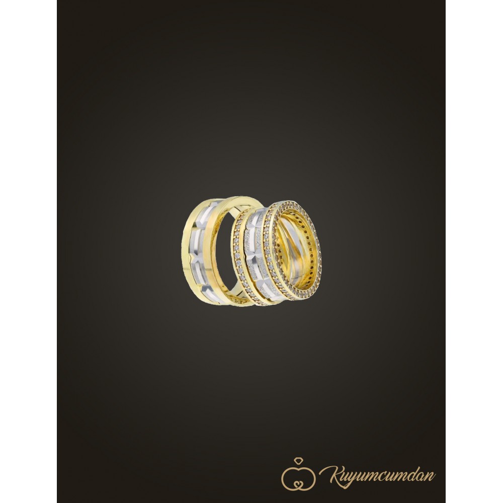 925 Ayar El İşi Altın Kaplama Gümüş Alyans Model 36