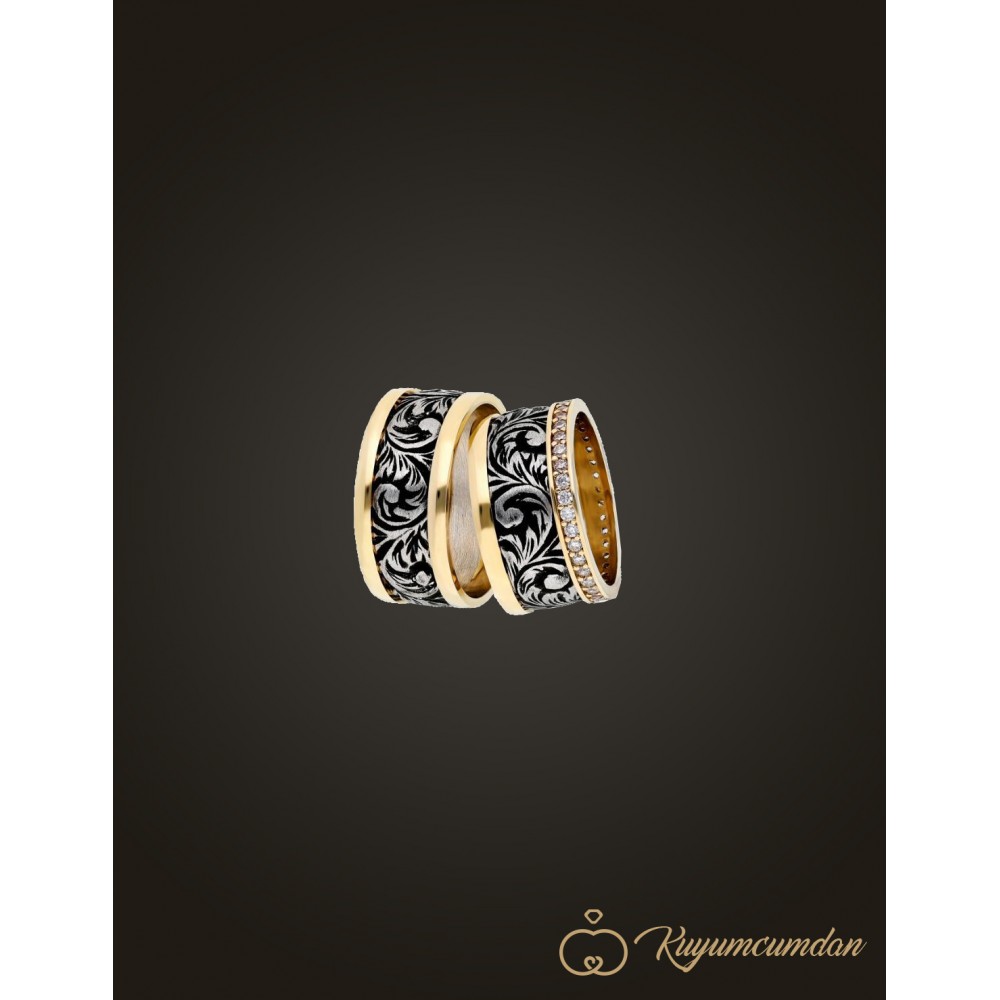 925 Ayar El İşi Altın Kaplama Gümüş Alyans Model 44