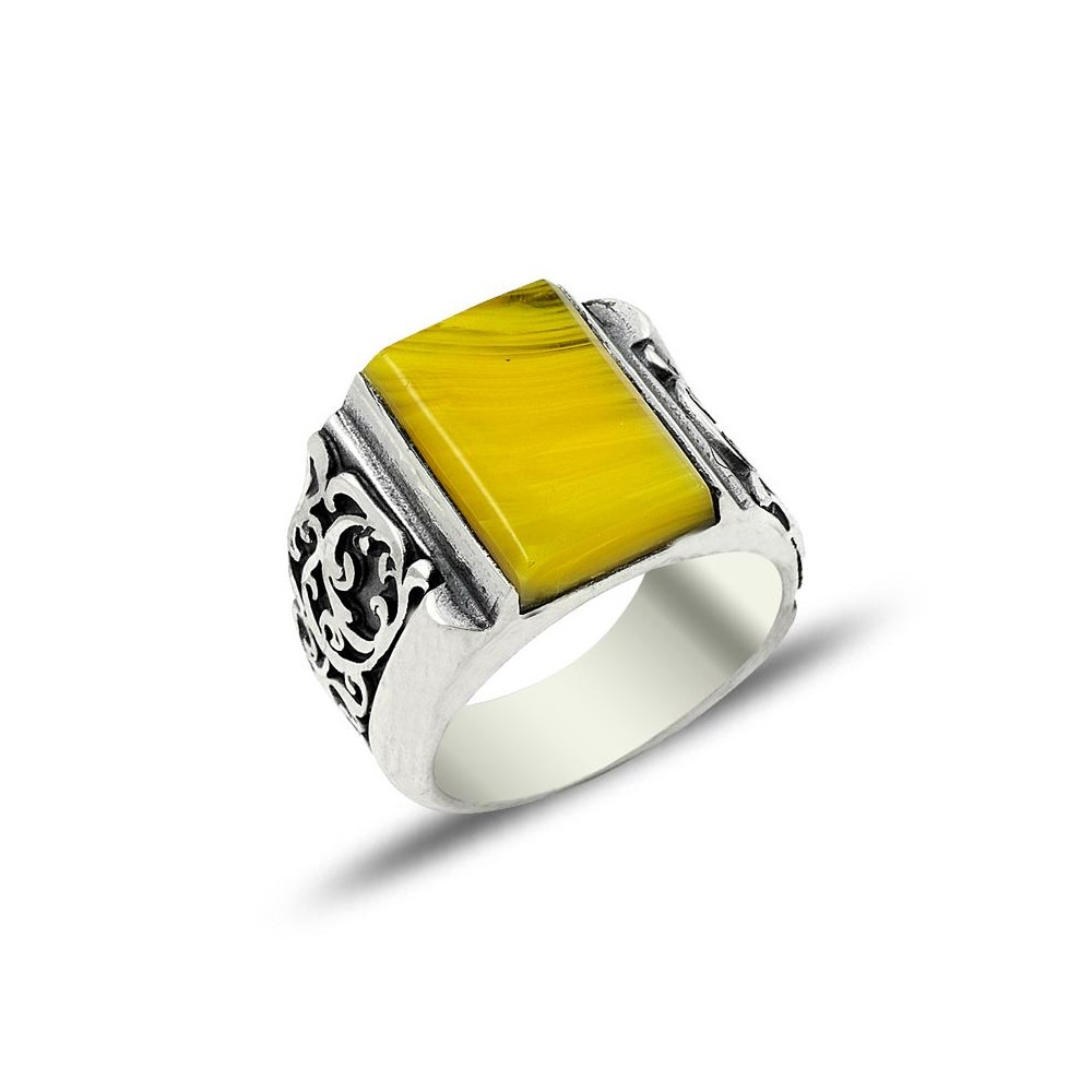 Erzurum El İşçiliği kalem işçilik ile üretilen sarı sıkma kehribar el işi gümüş yüzük özellikleri