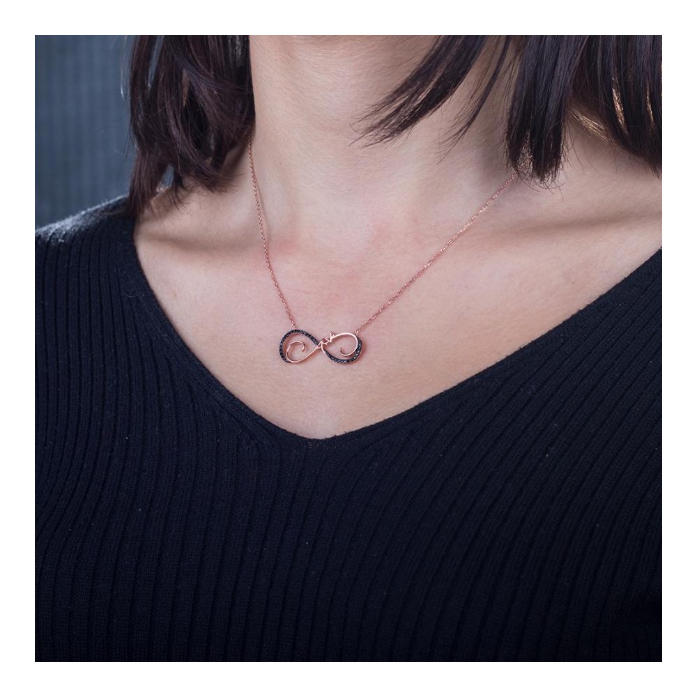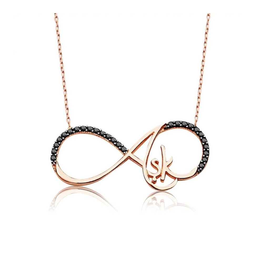 Aşkın gücüne ve sonsuzluğuna inananlar bu kolye ile onu kendinize saklayın. Sevgilinize bu harika kolyeyi hediye ederek olan aşkınızı en özel haliyle anlatabilirsiniz. Değerli maden olan gümüşten üretilen bu rose kaplama kolyede sonsuzluk motifi üzerine asilliğin temsilcisi siyah zirkon taşlar işlenmiştir. Aşk yazısı kıvrımlı hatlarla yazılarak estetik bir görüntü oluşturulmuştur. Siz de bu özel Aşk kolyesini kıymetlinize hediye edebilir onun kalbini fethedebilirsiniz. İsteğe bağlı olarak kolye boyu uzatılabilir.