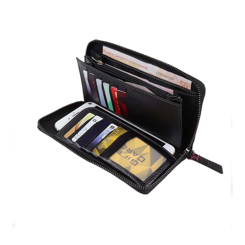 Kişiye Özel Fonksiyonel Hakiki Deri Kadın Cüzdanı Siyah