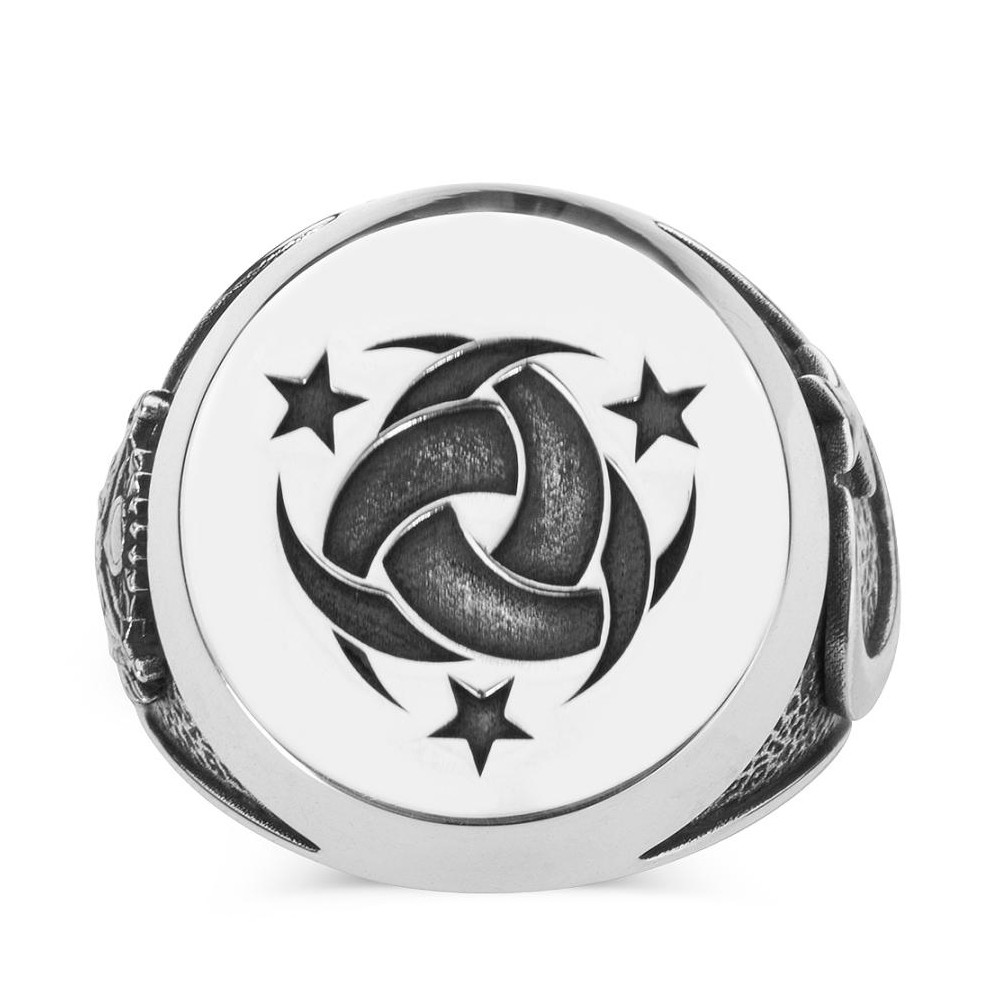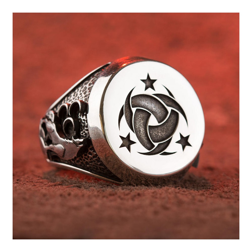 Yüzük yanlarında tarihi Bozkurt ve Ay yıldız motifine yer verilmiştir.