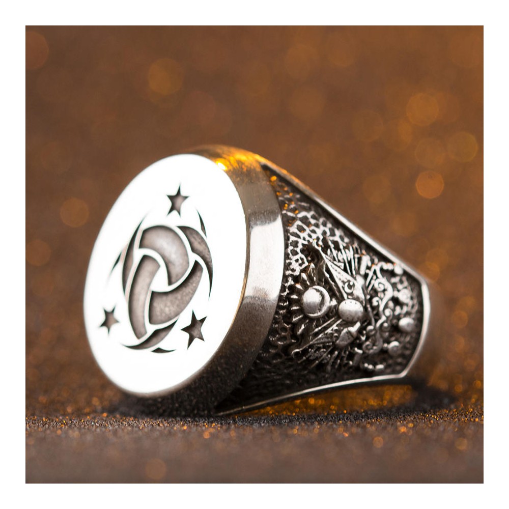 925 ayar gümüşten üretilen bu takıda yüzük yanlarında tarihi Osmanlı Arması ve Cumhuriyet'in sembolü olan Ay Yıldız motifine yer verilmiştir. Birinci dünya savaşı döneminde kurulan ve Osmanlı'nın çöküşü ile Cumhuriyet'in kuruluşuna şahitlik eden teşkilat, günümüzde mücadeleyi ve umudu temsil etmesi nedeniyle pek çok erkeğe ilham vermektedir.
