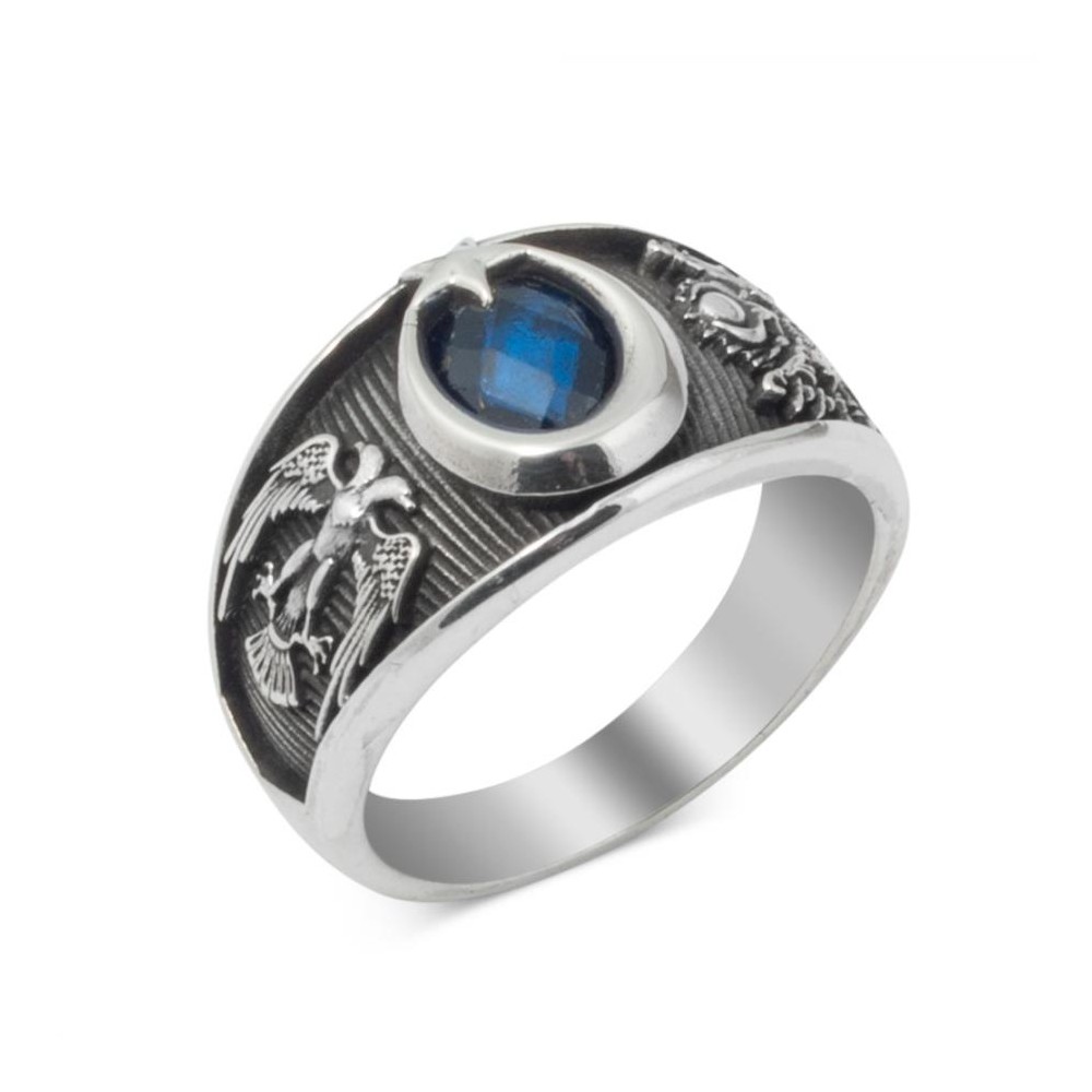 Modern Tasarımlı 925 ayar gümüş Mavi Taşlı Osmanlı Arması Selçuklu Kartalı Motifli Erkek Yüzük Özellikleri