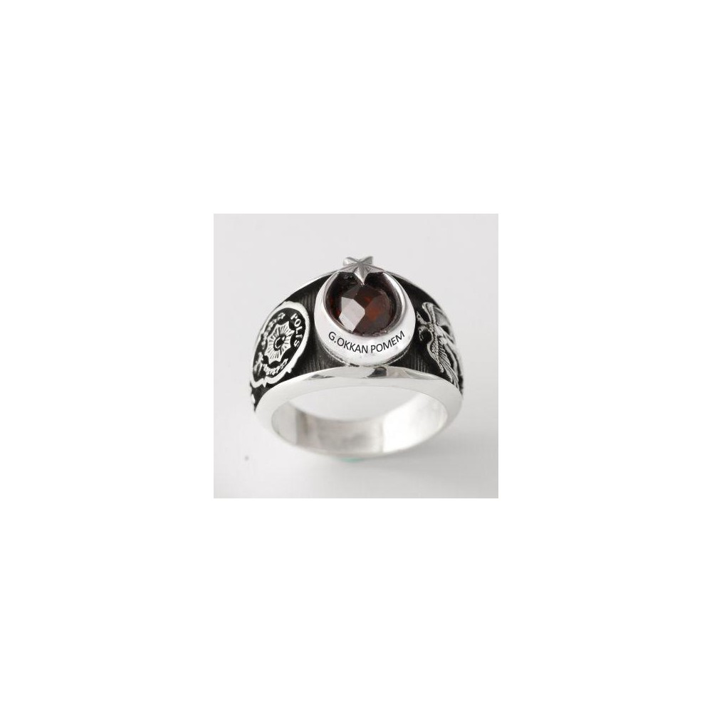 Yüzüğün bir yanında "Polis" amblemi, diğer yanındaysa güç, kudret, özgürlük ve bağımsızlığı simgeleyen "Çift Başlı Kartal" işlemesi bulunmaktadır.
