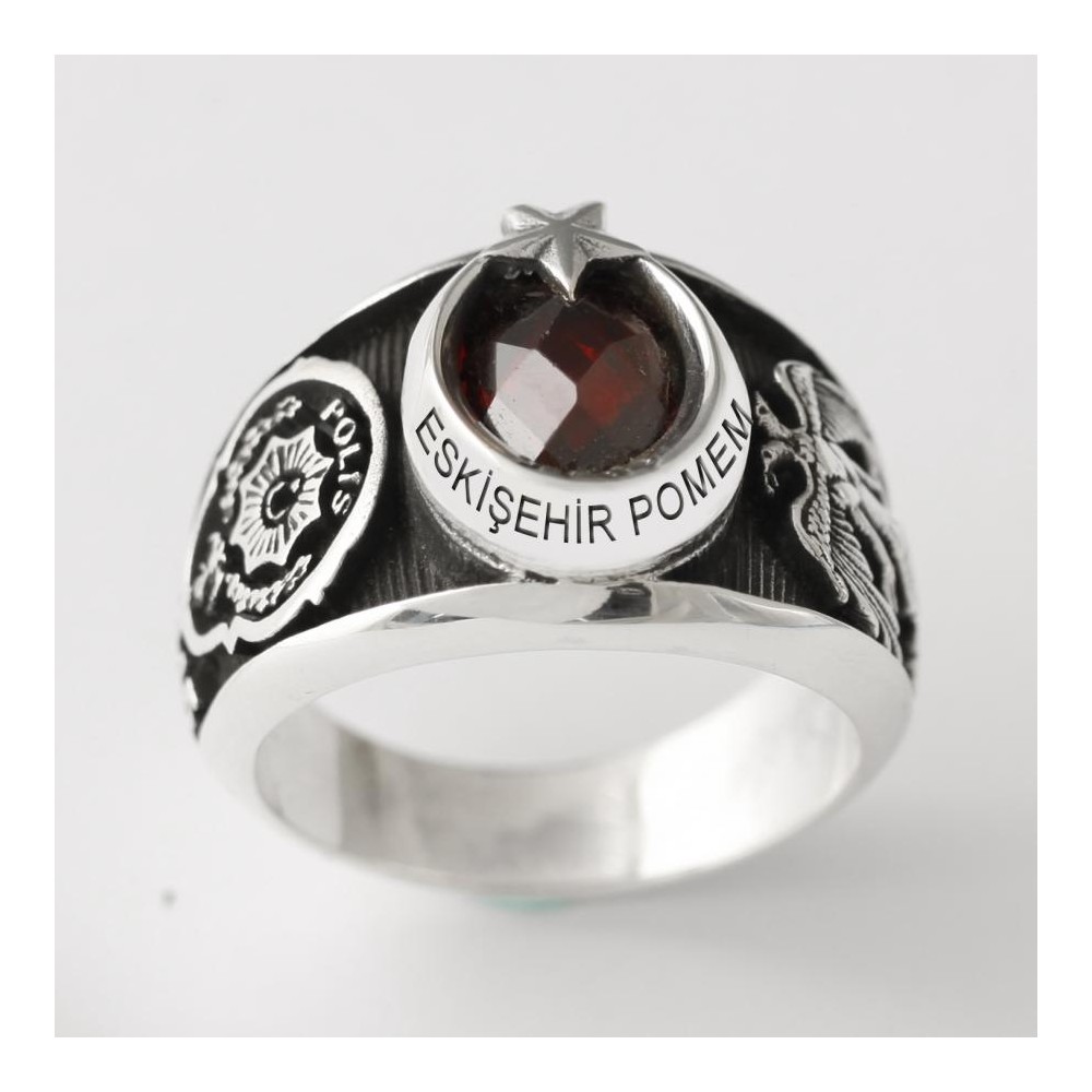 Yüzüğün bir yanında "Polis" amblemi, diğer yanındaysa güç, kudret, özgürlük ve bağımsızlığı simgeleyen "Çift Başlı Kartal" işlemesi bulunmaktadır.