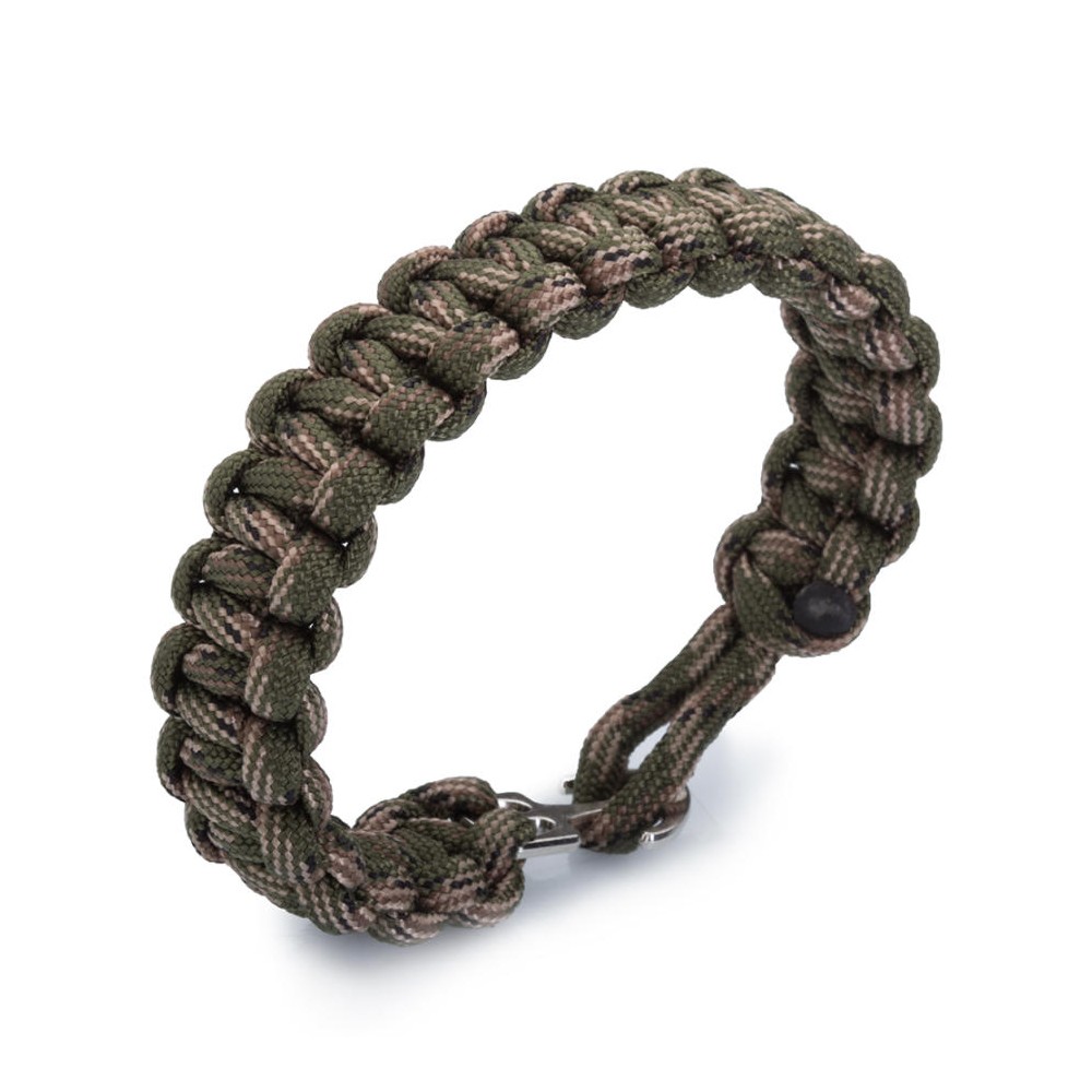 Acil durumlarda size yardımcı olacak "Hayatta kurtarma ekipmanları" olarak tasarlanan Paracord bileklikler farklı renk seçenekleri ve örme teknikleriyle karşınızda. Gerçek paraşüt ipi kullanılarak makine örmesi olmayıp el örmesi olarak tasarlanan bu bileklik kanca şeklindeki kapanma mekanizması ile zenginleştirilmiştir. Acil durumda oldukça kullanışlı olan bu aksesuar iç içe geçen örülü iplerden oluşmaktadır. Açıldığında 2 metre uzunluğunda paraşüt ipi elde edilebilen bu üründe kamuflaj desenli asker yeşilli tonlar kullanılmıştır. Çoğunlukla askeri personeller tarafından kullanılan bu aksesuar yürüyüşçüler, tırmanıcılar, kampçılar veya doğada zaman geçiren herkes tarafından kullanılabilmektedir. Bilekte oluşturduğu şık görüntü nedeniyle günlük hayatta da tercih edilebilir. Siz de hemen sipariş verin sade tasarımlı şık bir paracordun sahibi olun.