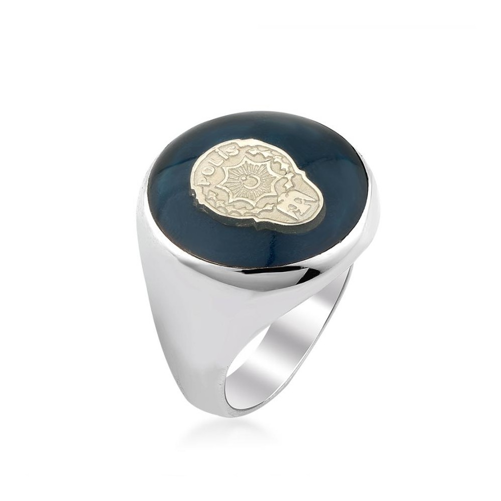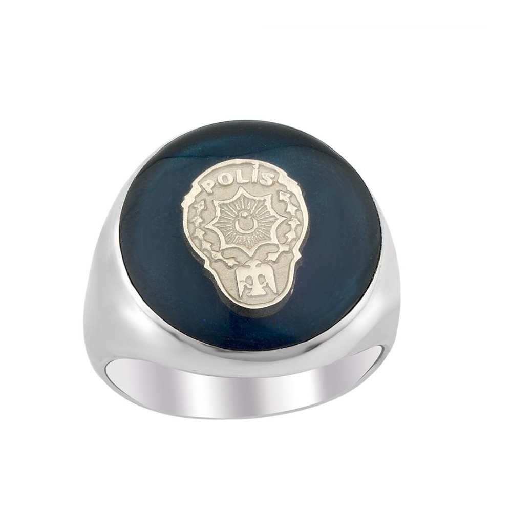 Polis amblemli 925 ayar gümüş erkek yüzükÜrün Özellikleri925 ayar gümüşle üretilmiştir.Yaklaşık olarak 14 gram ağırlığındadır.Yüzük üzerinde mine bulunmaktadır. Yüzük minesi üzerine Polis motifi işlenmiştir.