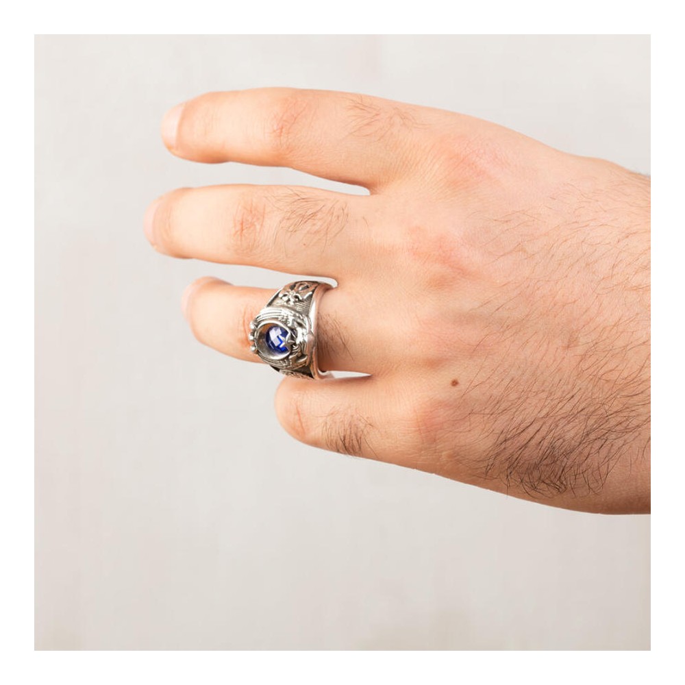 Yüzük üzerine tek Kartal başı figürü işlenmiştir, bu figür kırmızı zirkon taşla oluşturulan ay yıldızlı Türk Bayrağı motifi ve Kartal pençesi ile güçlendirilmiştir.