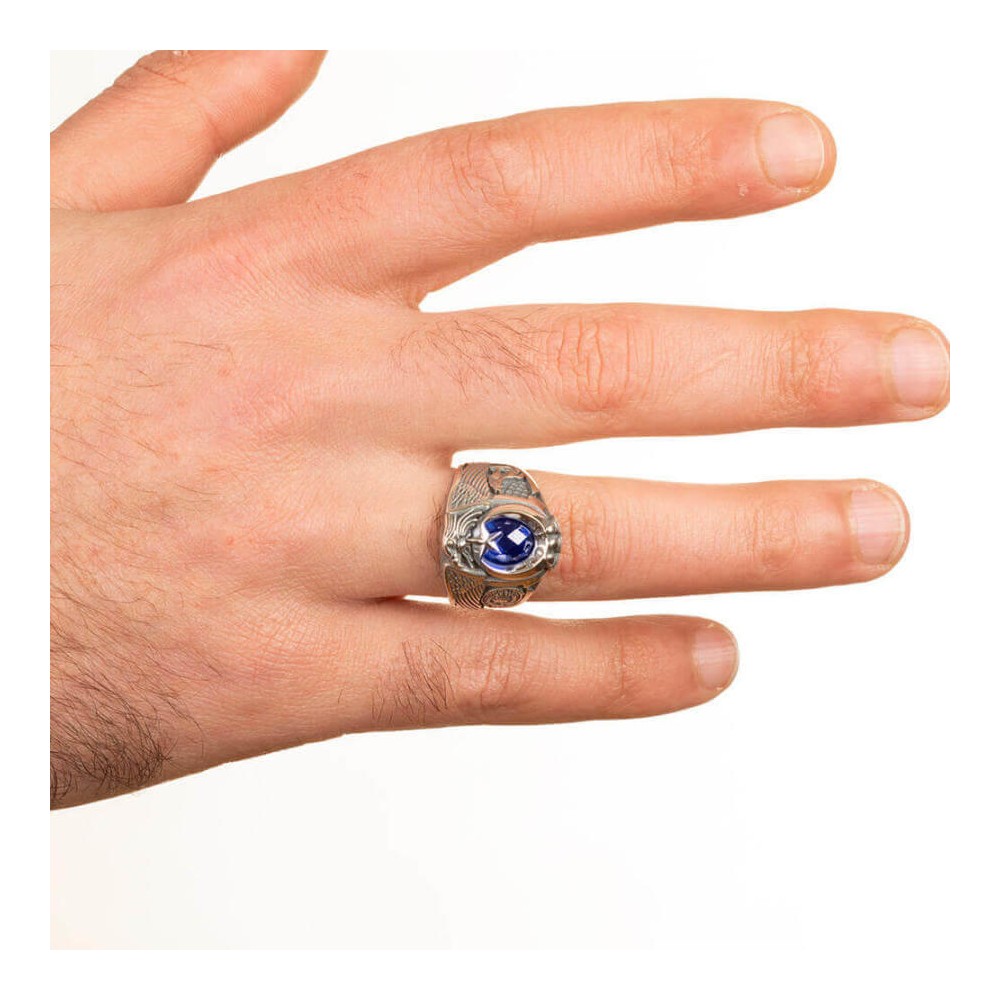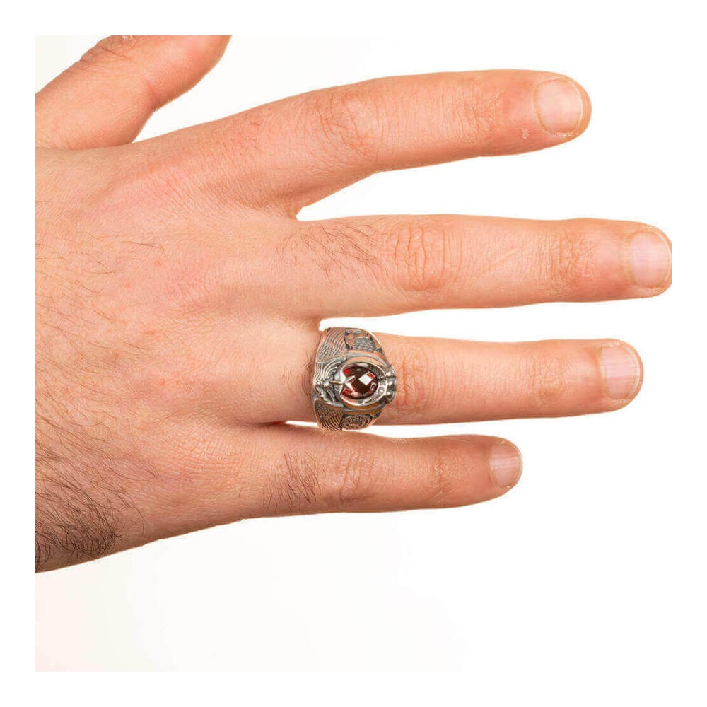 Yüzük üzerindeki zirkon taşa ay ve yıldız motifleri işlenerek tek kartal başı ile birleştirilmiştir.