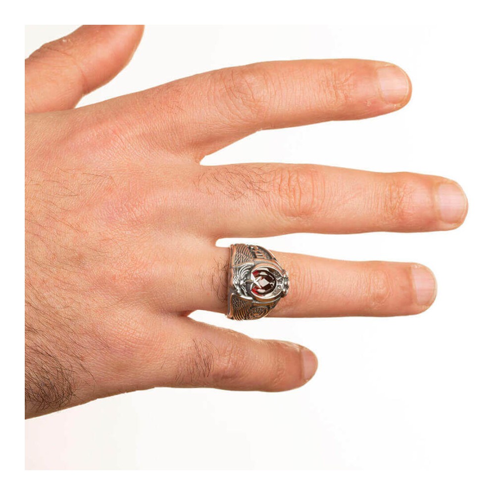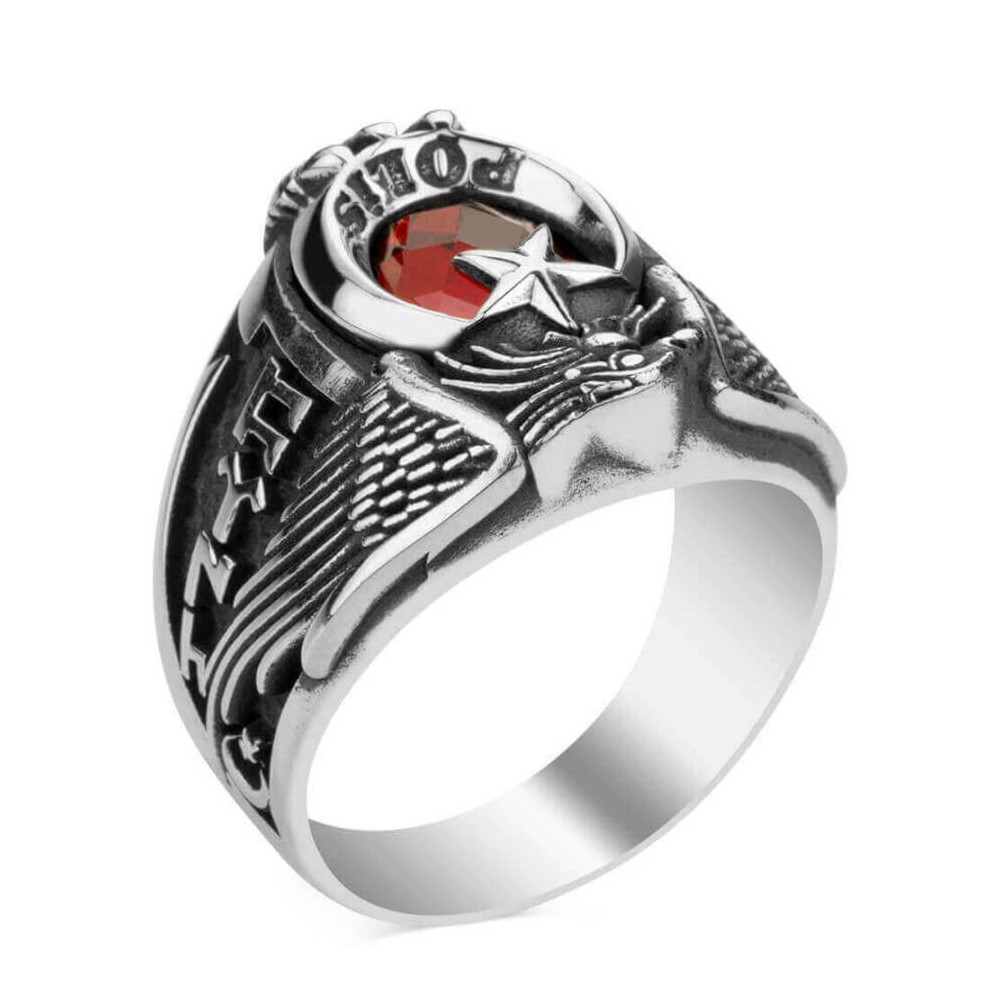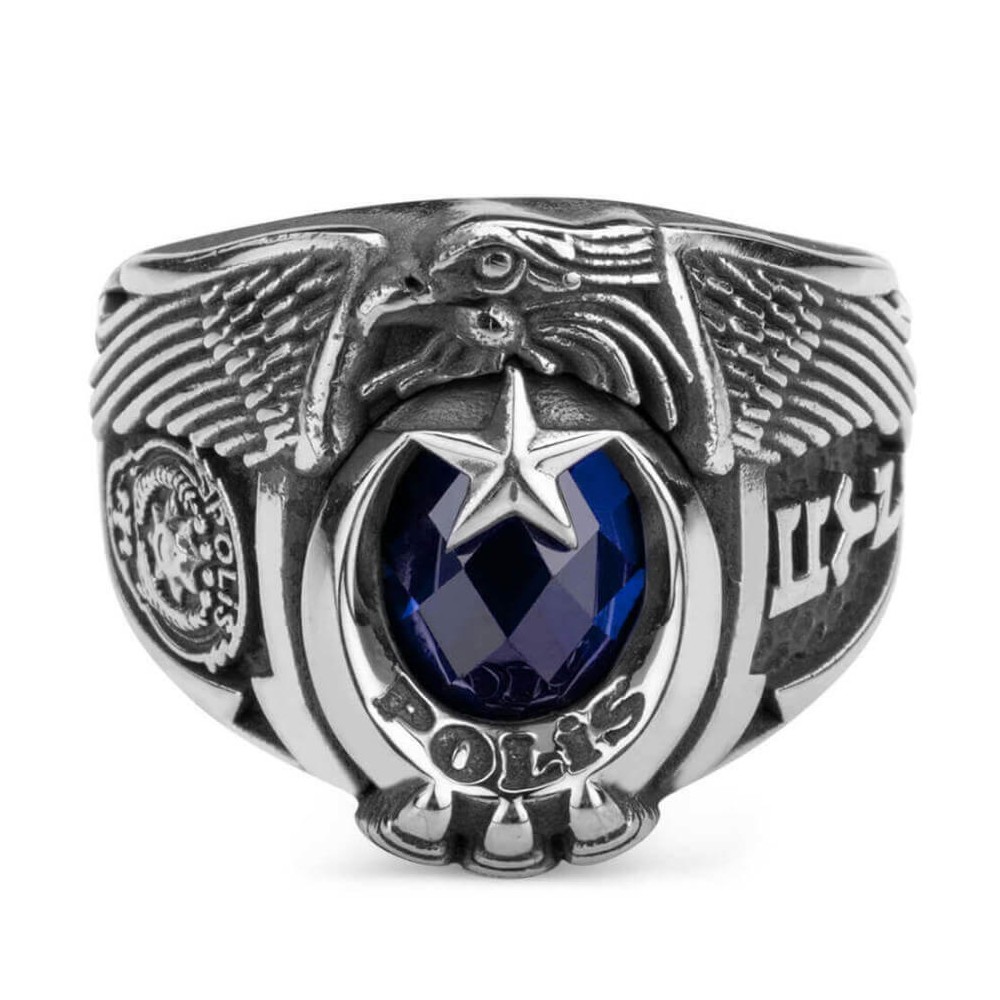 · 925 ayar gümüşten üretilmiştir.· Yaklaşık 14 gram ağırlığındadır.· Hilal içinde "Polis" yazmaktadır. · Yüzüğün bir yanında 'Polis' amblemi işlemesi, diğer bir yanında ise "Göktürkçe Türk" yazısı motifi bulunmaktadır. · Polisler için hazırladığımız bu ürün deneyimli ekibimiz tarafından üretilmektedir. · Ömür boyu bakım garantimiz altındadır. Polisler için tasarladığımız 925 ayar gümüş zirkon taşlı, Göktürkçe Türk yazılı Tek Kartal Başlı Polis Yüzüğü. Bu gümüş yüzükte neden zirkon taş kullanılıyor?· Zirkon taşın en önemli özelliği dayanıklı olmasıdır. Yüksek ısıda ürettiğimiz 925 ayar gümüş yüzüklerimizde yüksek ısıya dayanıklı olduğu için zirkon taş kullanılmaktadır. Yüzük ölçümü nasıl öğrenebilirim? Yüzük ölçünüzü herhangi bir kuyumcudan ücretsiz olarak öğrenebilirsiniz.