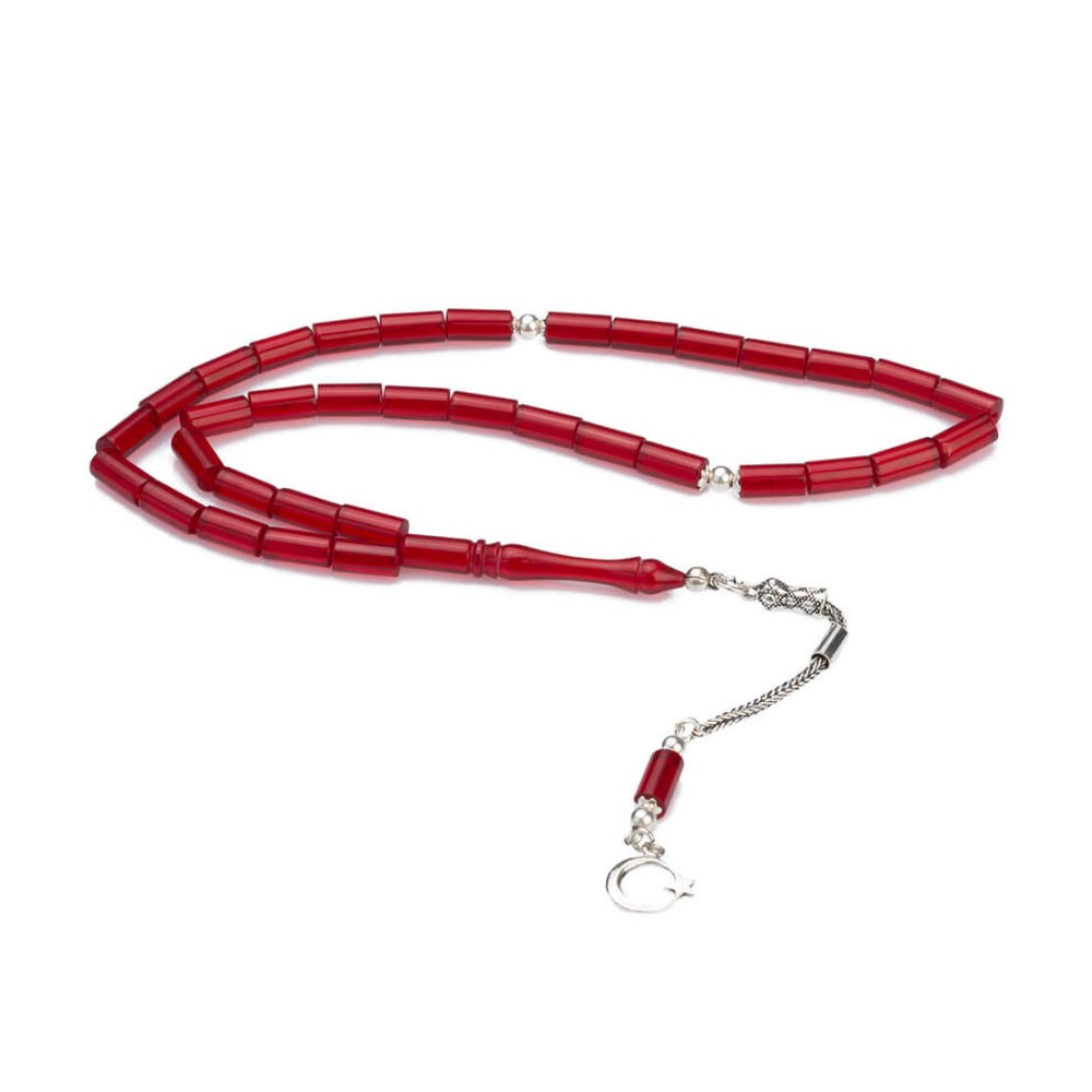 Ay Yıldız Püskül Sıkma Kehribar Kırmızı Kesme Tesbih