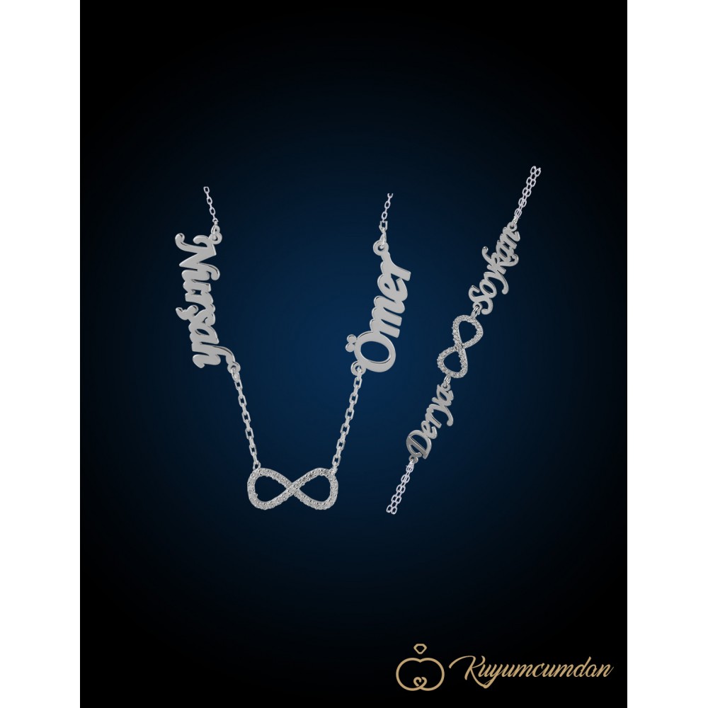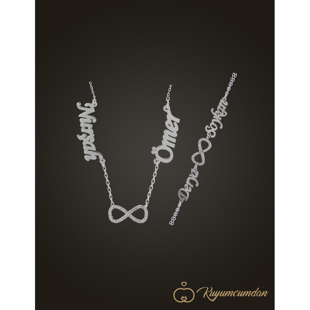 Zirkon Sonsuzluk Çift İsim Kolye Ve Bileklik Seti