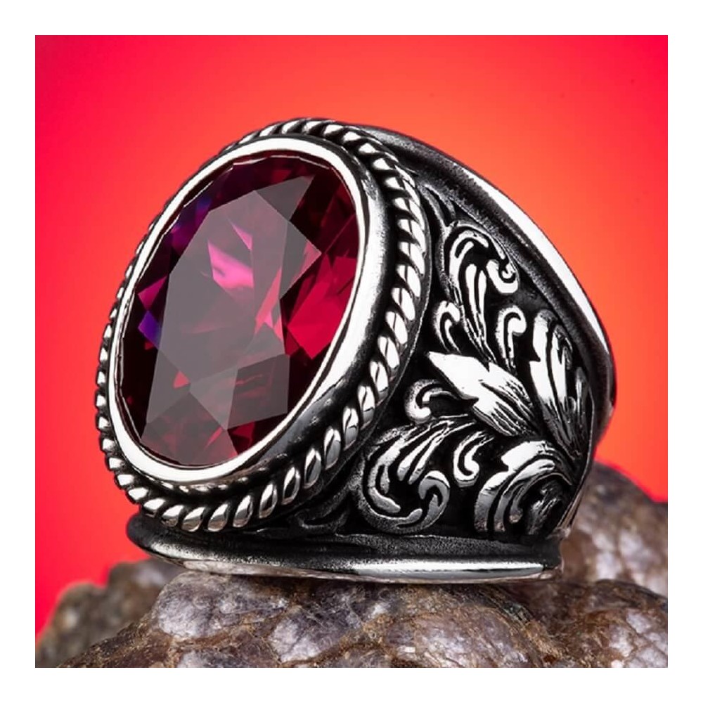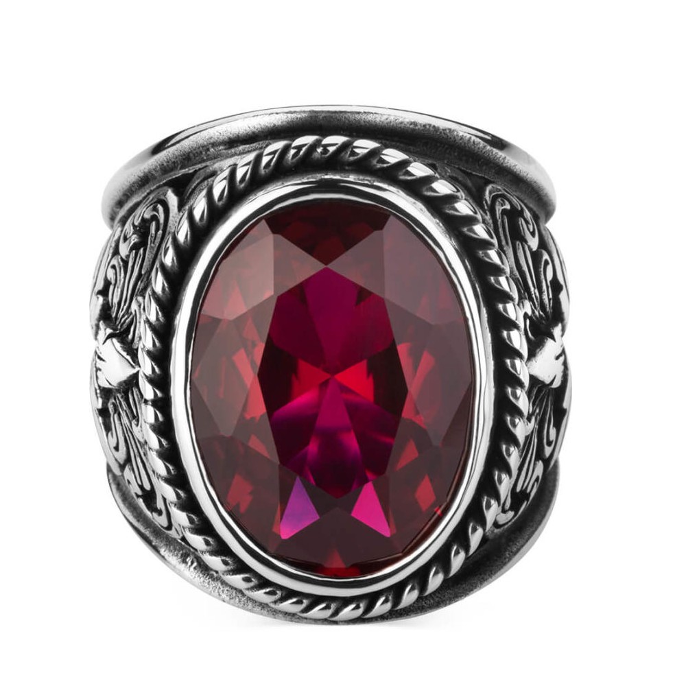925 Ayar Gümüş Ruby Taşlı Motifli Erkek Yüzük Ürün Özellikleri
