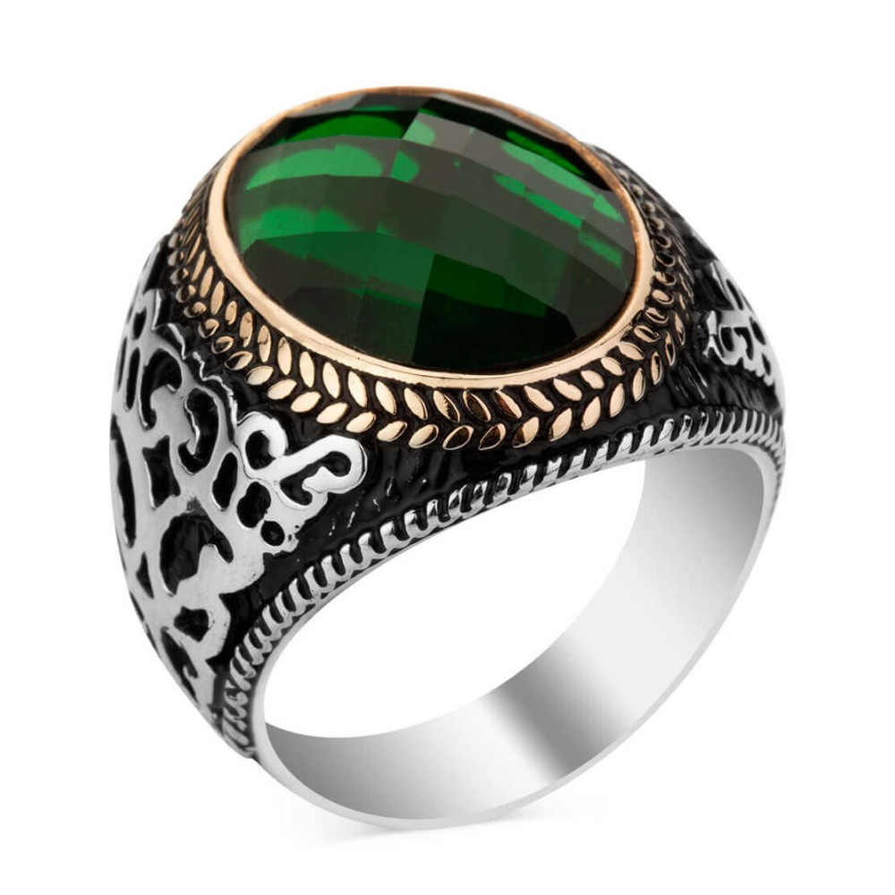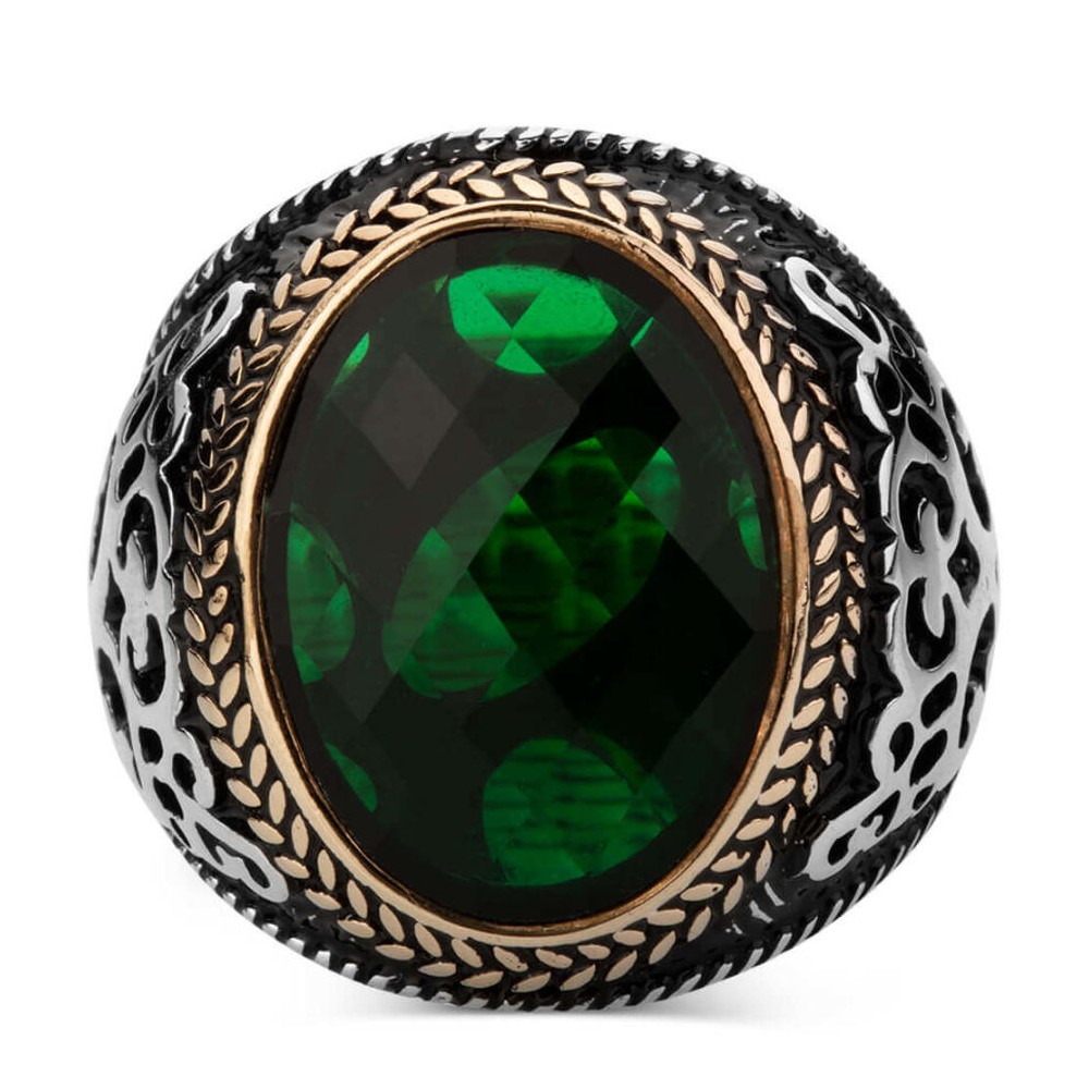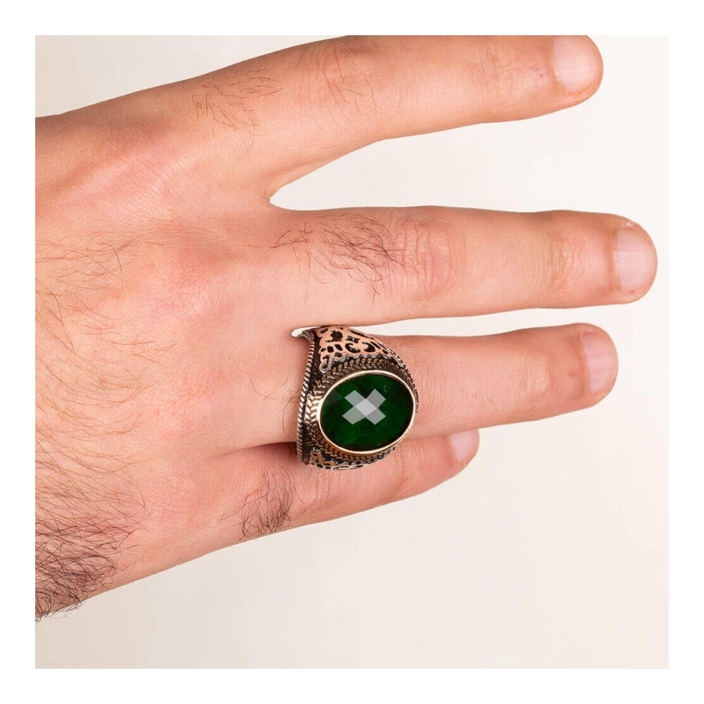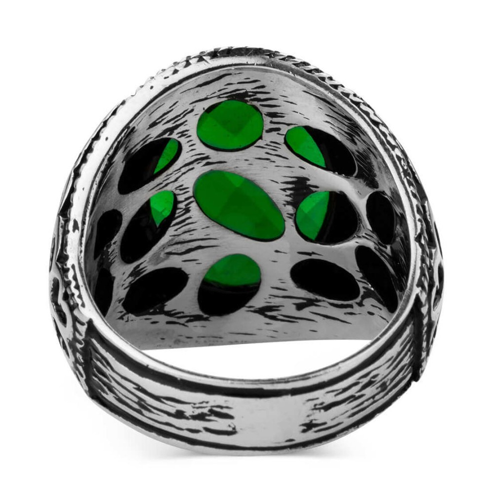 925 Ayar Gümüş Yeşil Zirkon Taşlı Erkek Yüzüğü