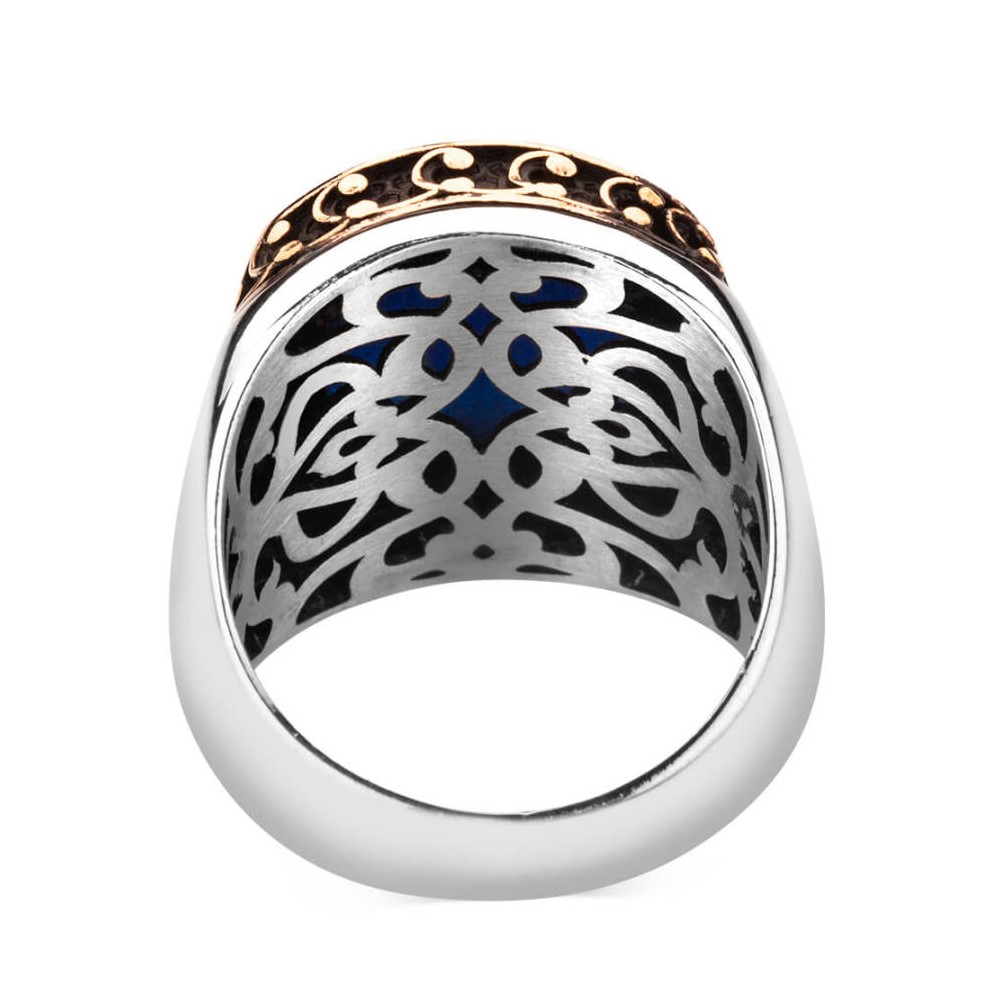 925 Ayar Gümüş Zirkon Mavi Taşlı Sade Erkek Yüzük