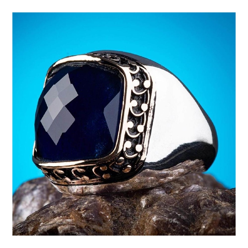 925 Ayar Gümüş Zirkon Mavi Taşlı Sade Erkek Yüzük Ürün Özellikleri