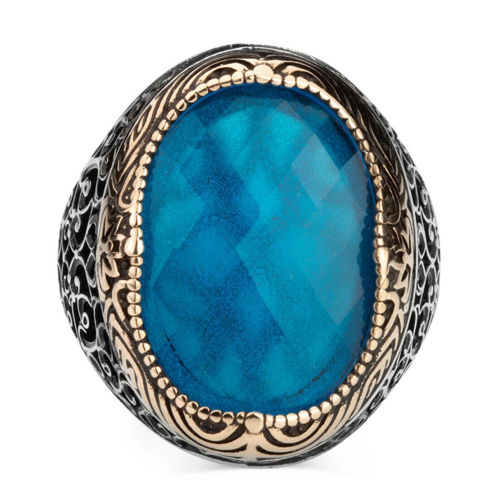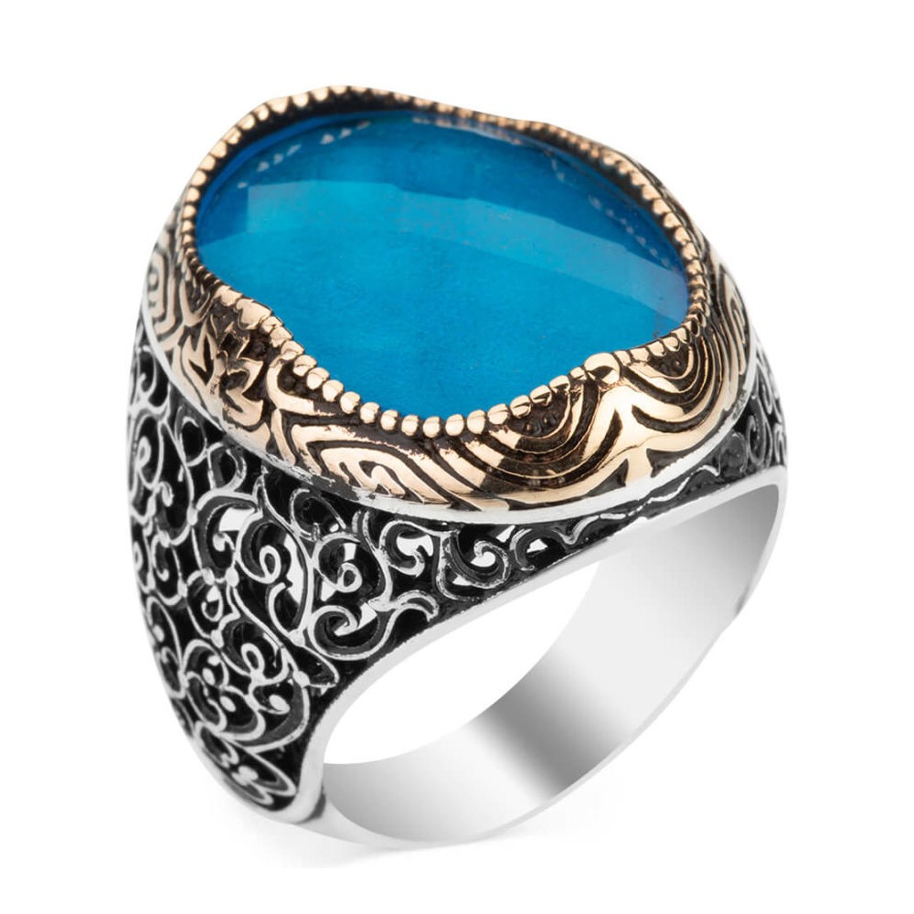 Açık Mavi Zirkon Taşlı Süslemeli Gümüş Erkek Yüzük Özellikleri
