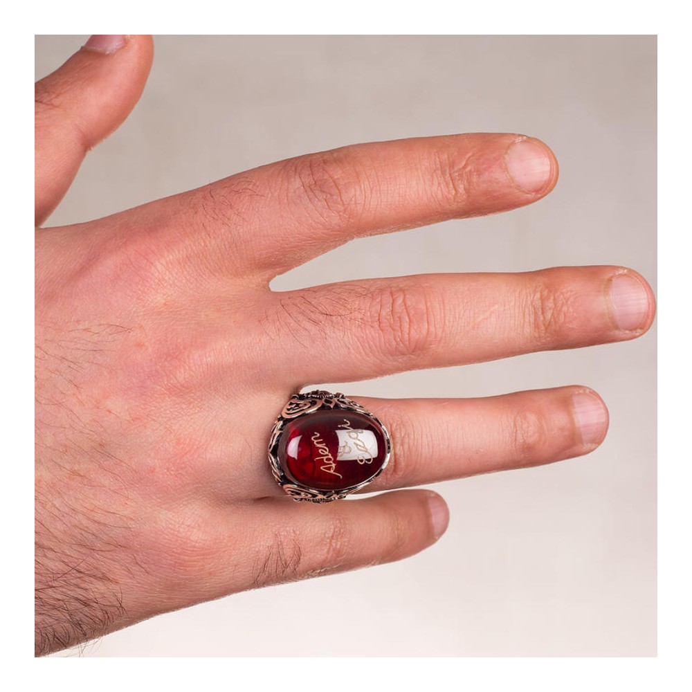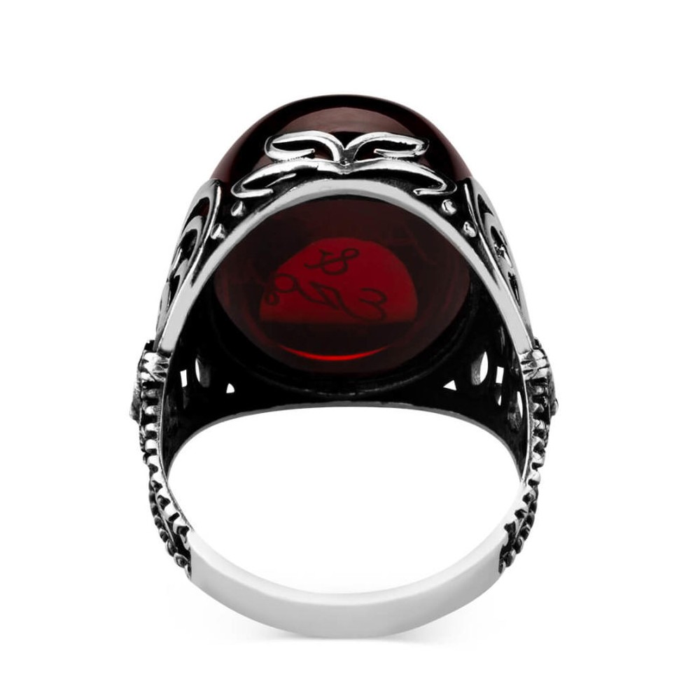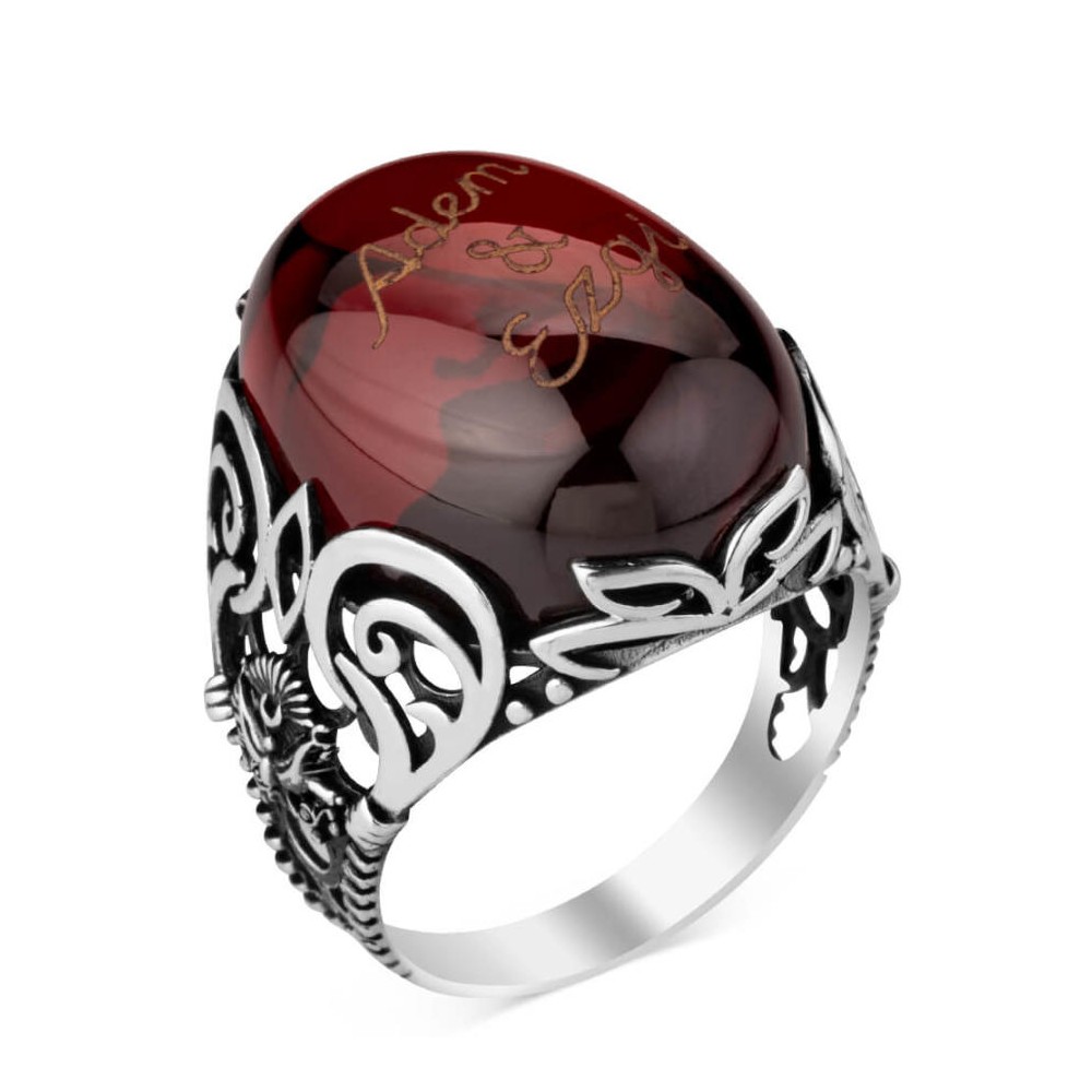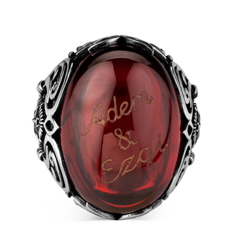 Osmanlı Arma Figürlü Kırmızı Taşlı İsim Yazılı Yüzük Ürün Özellikleri