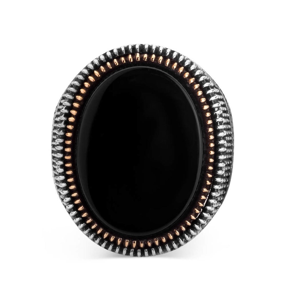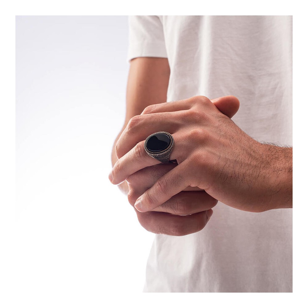 Oval Siyah Oniks Taş Gümüş Erkek Yüzük