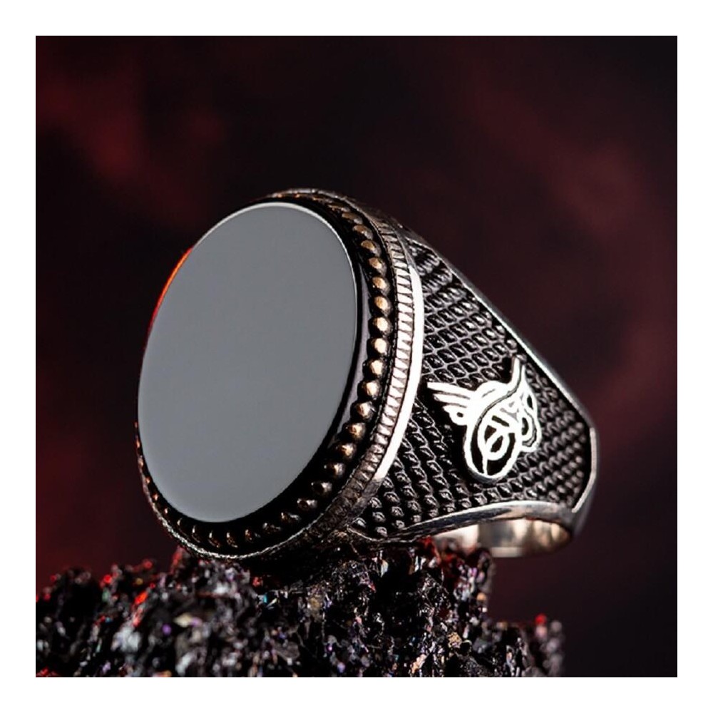 Oval Siyah Oniks Taş Tuğralı Gümüş Erkek Yüzük Ürün Özellikleri
