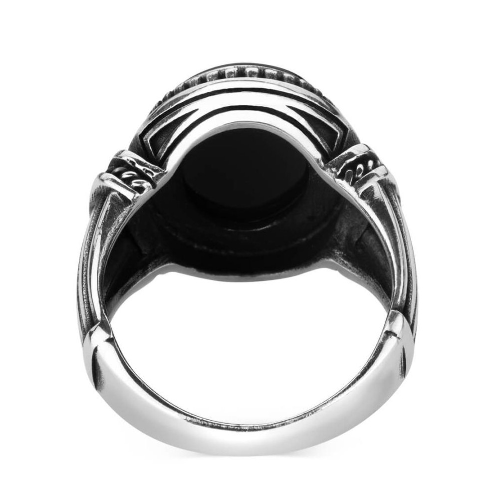 Oval Siyah Oniks Taşlı 925 Ayar Gümüş Yüzük