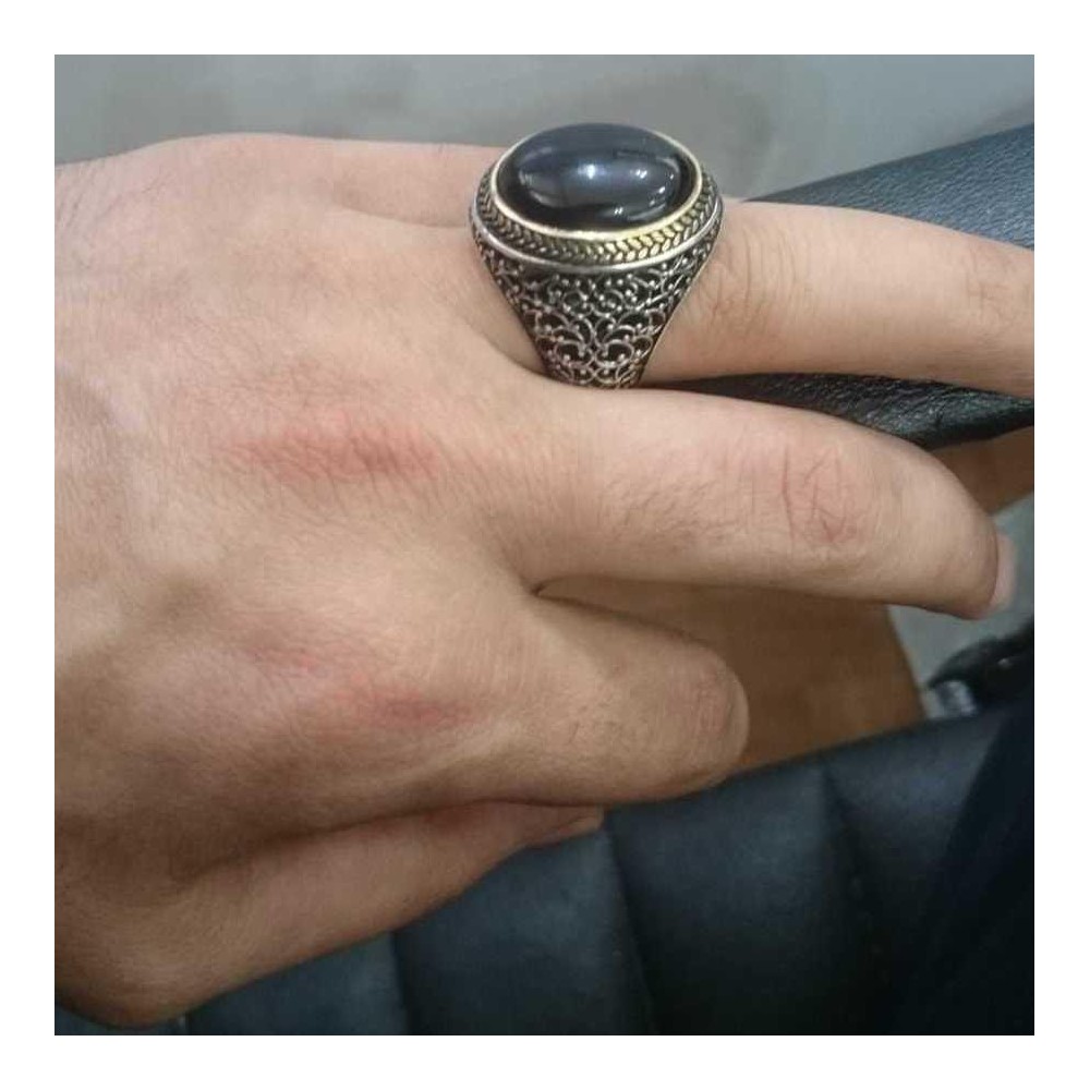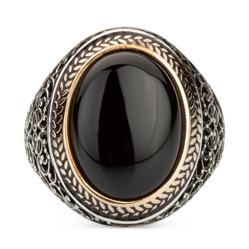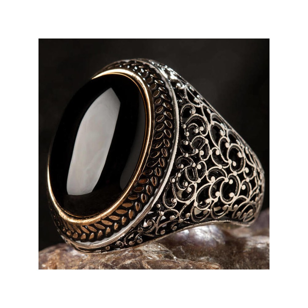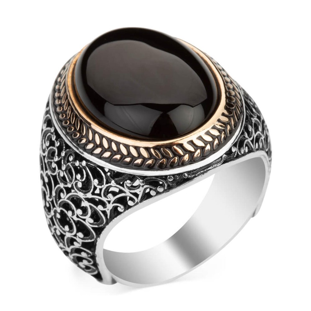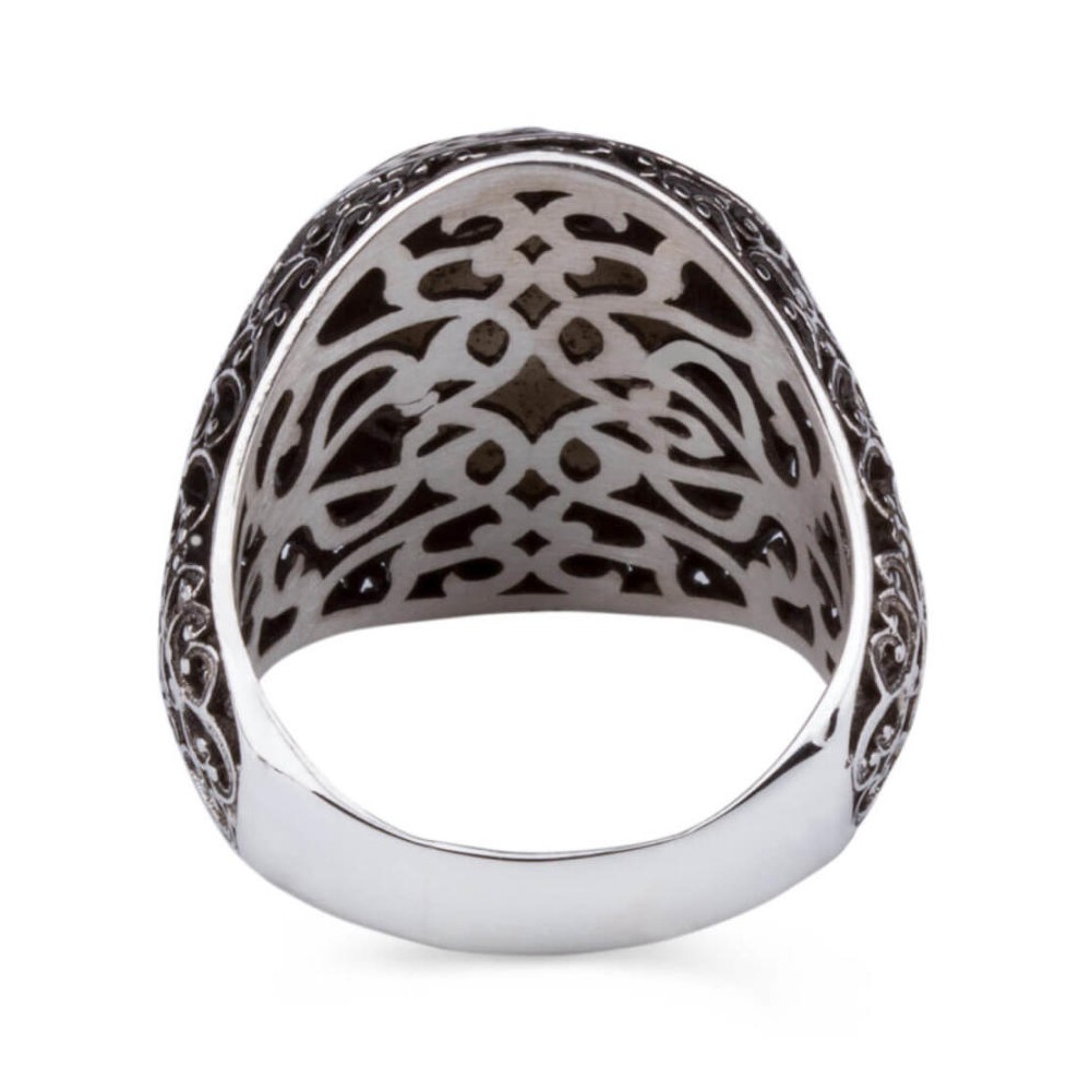 Oval Siyah Taşlı Simetrik Desen Gümüş Erkek Yüzük Özellikleri