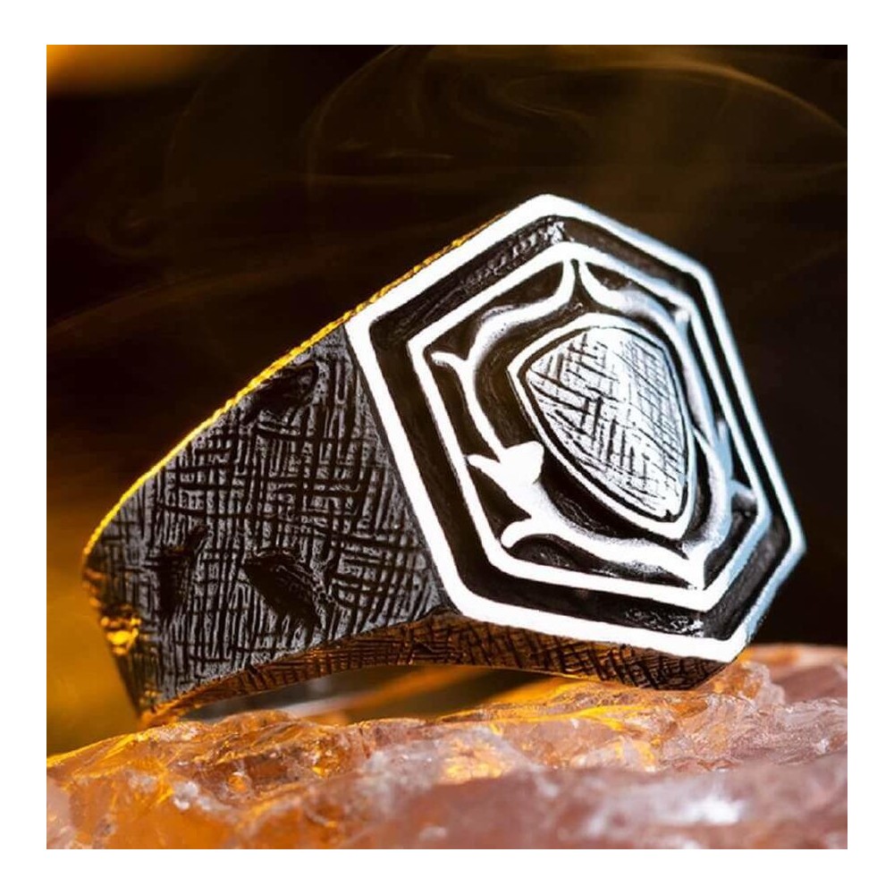 Kalkan Tasarım Eskitme Gümüş Yüzük