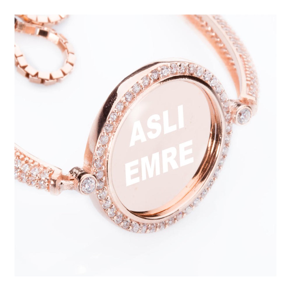 Sevgiliye hediye arayanlar için harika bir seçenek olan isimli aksesuarlar farklı tasarımlarla Kuyumcumdan'da sizi bekliyor. Ona olan aşkınızı harika bir hediye ile ölümsüzleştirmeye ne dersiniz? Her daim bileğinde taşıyabileceği ışıltı bir bileklik onu mutlu etmeye yetecek. 925 ayar gümüşten üretilen yuvarlak kesim bu aksesuar rose kaplama olarak tasarlanmış olup kolye etrafı ve zincirleri küçük beyaz zirkon taşlarla süslenmiştir. Siz de hemen sipariş verin, kusursuz tasarımlı şık bir aksesuarın sahibi olun.Ürün Özellikleri925 ayar gümüşle üretilmiştir. Kalıpla üretilmiştir.Ağırlık: 6,60 gramBilek ölçüsü ayarlanabilir özelliklidir.Sitemizden Yaptığınız AlışverişlerdeSiparişinizin tamamlanmasının ardından; hafta sonu ve tatil günleri hariç, ürününüz 48 saat içerisinde kargoya verilir. (Özel üretim ve el işçiliği ürünler için lütfen Müşteri Temsilcimiz ile görüşünüz.)Siparişiniz Türkiye'nin her noktasına anlaşmalı kargo şirketimiz ile 3 iş günü içerisinde teslim edilmektedir.Beğenmediğiniz ürünü iade edebilir ya da değiştirebilirsiniz.